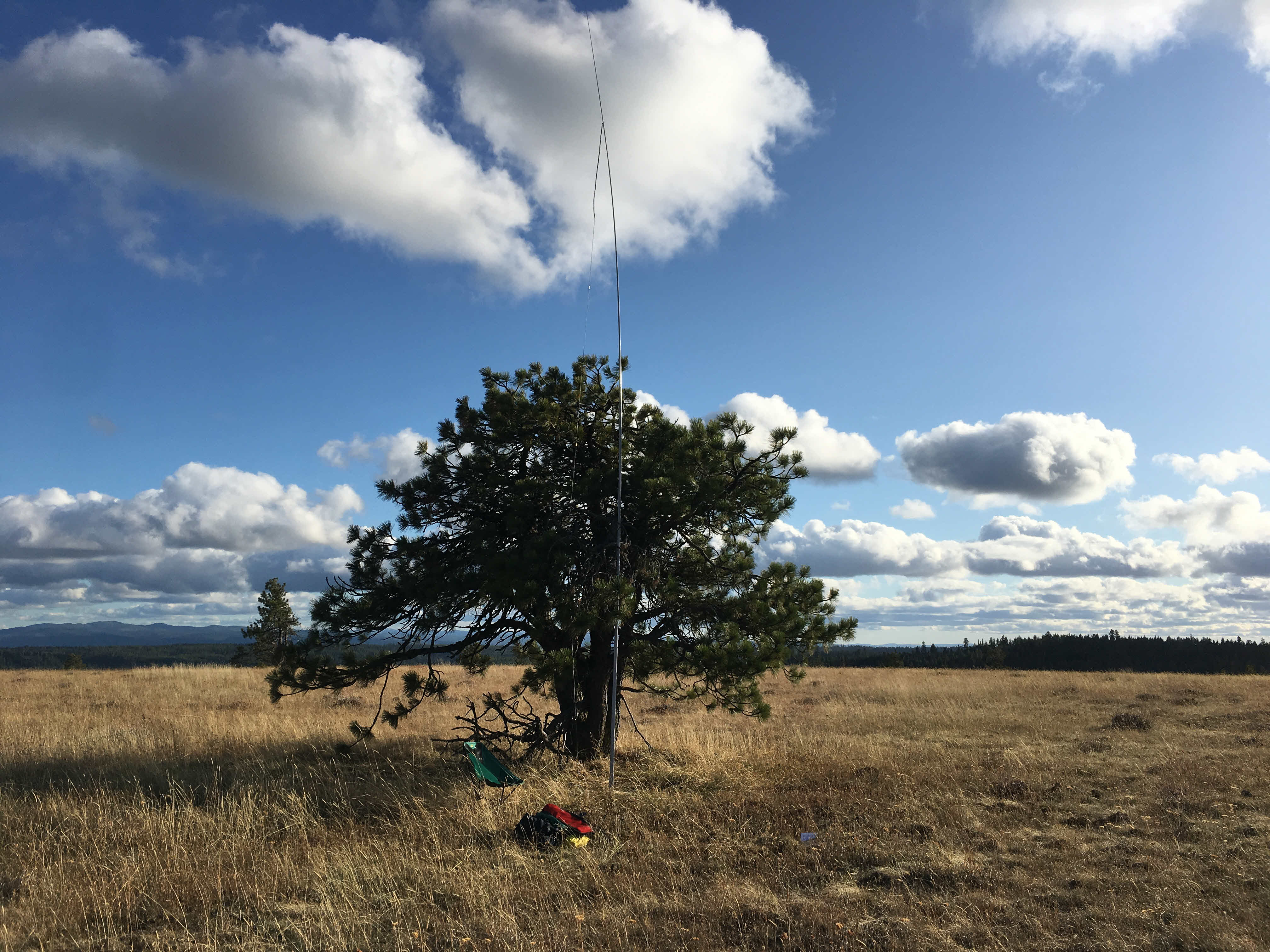There is a rocky meadow at the top and a lone pine tree stands in nearly the exact coordinates of the summit which is great for stringing an antenna (pic below). There are treed areas surrounding the summit per se, but the activation zone is huge with a very large area at the same height as summit coordinates. I had mobile phone coverage and APRS from the top, but until you get there, no signals on either. Good signal into the Spout Springs repeater on 146.800 -.60 123 Hz tone.