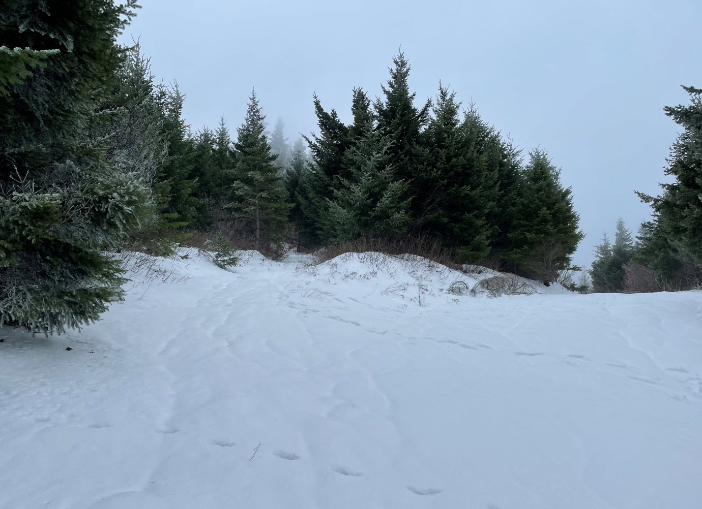 My topo map showed the summit in a different location than the SOTA co-ordinates so make sure you attain the correct summit. A forest road passes about 250 feet from the summit. I encountered freezing fog at the top and never got to see the view, so the next activator will have to post summit views, I think there would be a good view of the Gorge.