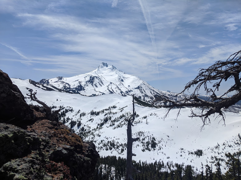 Well, be careful of preseason conditions - downed trees everywhere along the trail slowed us down considerably, possibly 15 extra minutes just to get to the actual trailhead, and then more logs as we headed up South Breitenbush Trail. The trail itself is lovely, and it's probably quite well maintained during the season, but in preseason you'll probably have similar issues. This persisted until we had climbed to about 4000 ft, and we camped at only 3900, at roughly 44.7405, -121.8669.