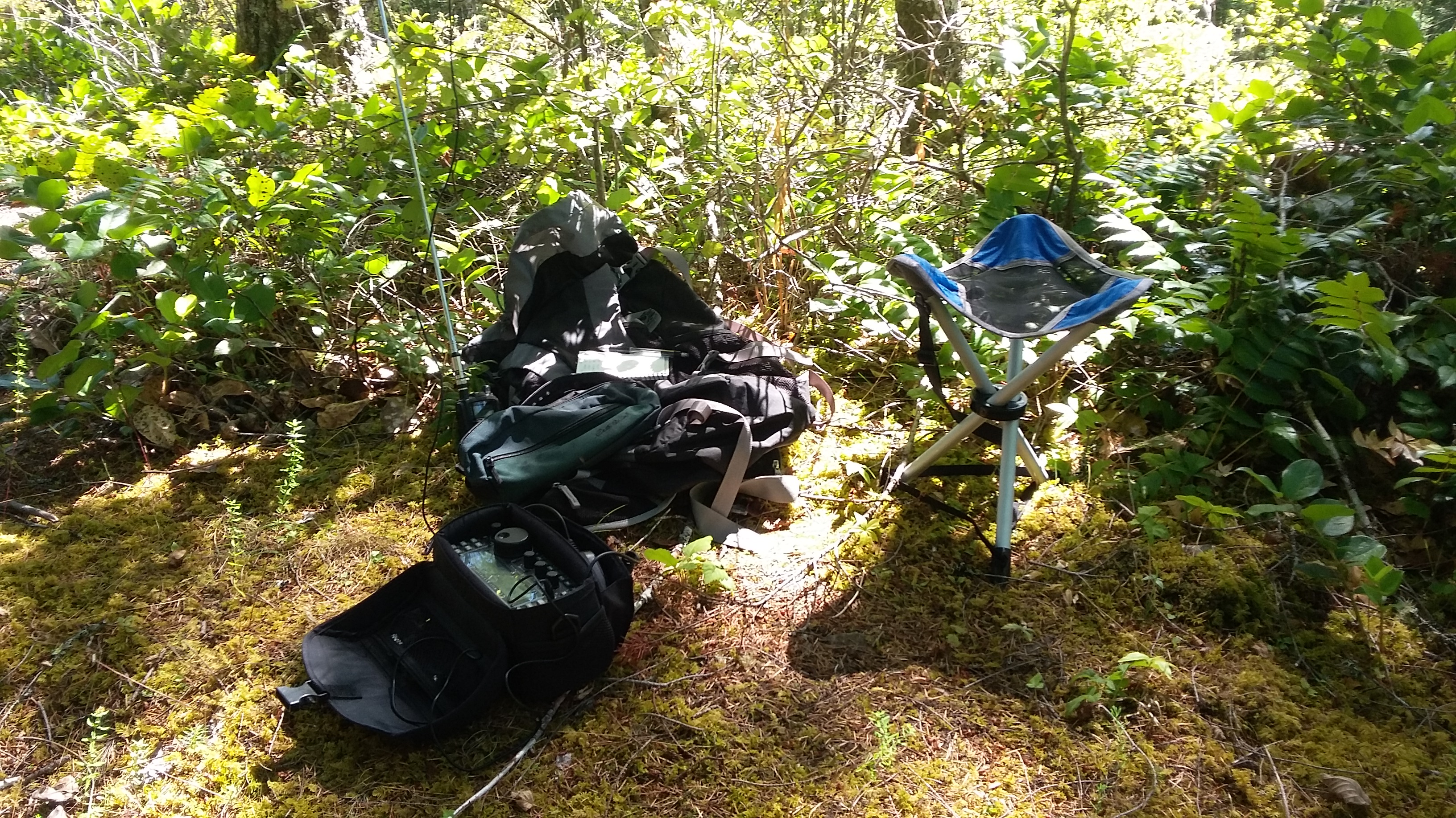 Take the Wilson River Highway 6 west from the turnoff from Highway 26. You'll go about 27.5 miles and turn left onto Ben Smith Road. You'll follow this road about a mile to turn left. You'll continue on up another 3.8 miles and ending up in small triangle of roads about 0.2 miles from the summit proper. I parked near 45.58380, -123.49133 and headed up a very steep motorcycle trail. Poles and good boots will be helpful to climb this track. There may be less steep alternative trails, but I used the shortest route. There is a bit of room off the trail at the summit where I set up. You are in close forest but there's enough room to set up an EFHW.