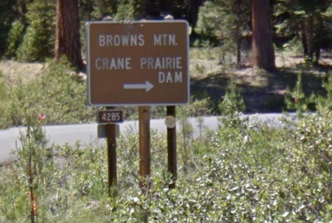 From Highway 97 south of Sunriver, proceed west on South Century Drive, NF-42. You'll pass two easier summits, Bates Butte and Pistol Butte. Just after you cross the Deschutes River you'll turn right at a large sign saying "Browns Mountain" - NF-4285. The very next left (~150 yards) is a gated road where you'll start your trek.