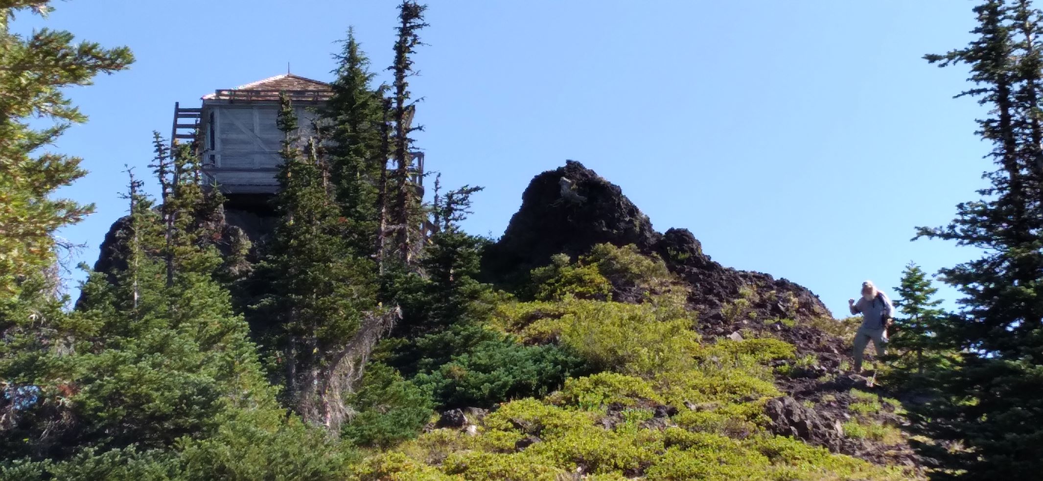If you are touring anywhere near Crater Lake National Park, Garwood Butte is a quiet destination for an activation. The forest road is fairly Priusable and the hike is reasonably short, even if a bit steep in places. As for a number of other summits, one reward for making it to the top is a historic fire lookout. The "upper" trailhead is about 1 mile and 600 feet of gain - from Forest Road 3703 (Three Lakes Rd) it's about 2.3 miles and 1000 feet.
