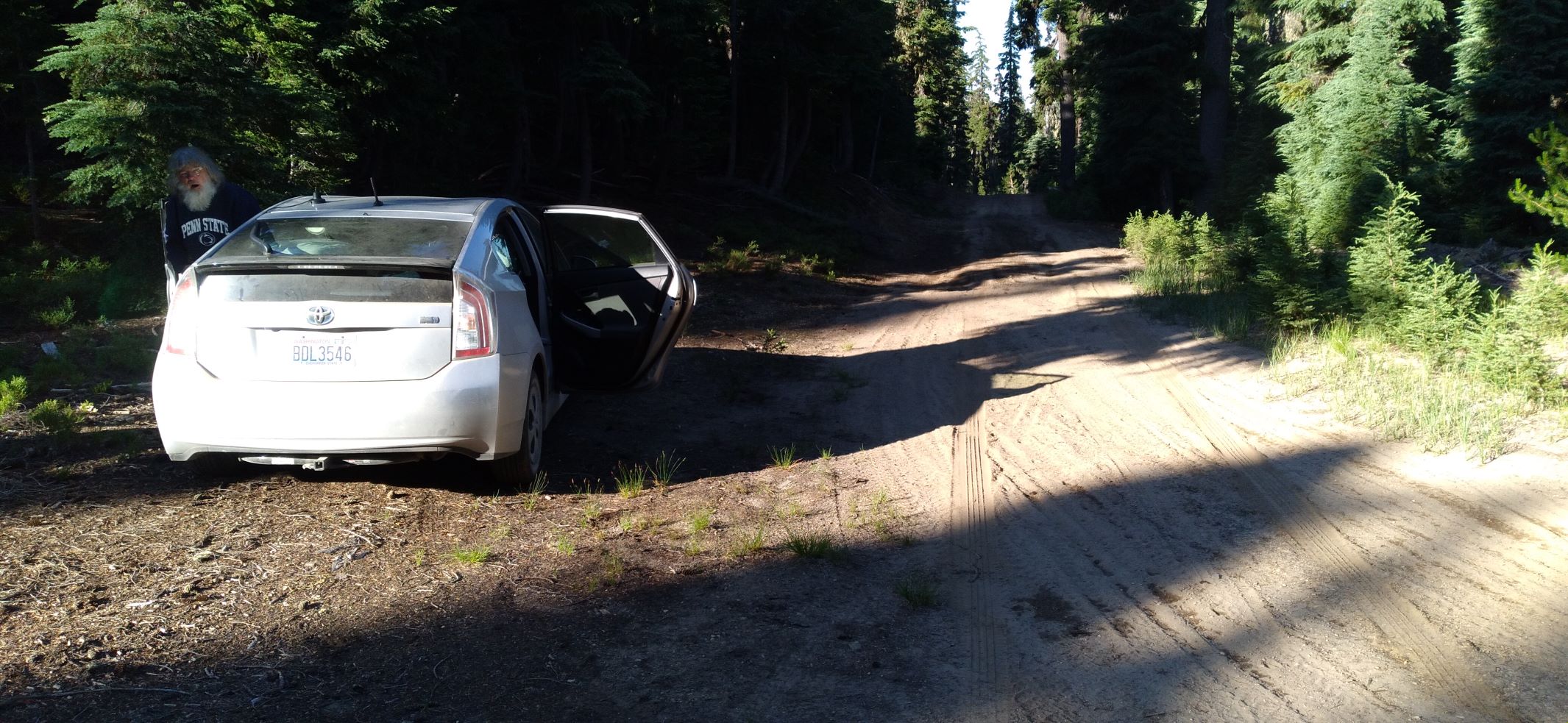 If you start from the Prius spot you may see a bit of the trail where it crosses Road 370 - it will eventually cross the road again at the upper TH - but you'll have a better idea of where to look if you go that way. In one of the photos below Darryl-WW7D is marking where the lower TH crossed the road. We didn't see any sign of the trail where it meets 3703 as shown in the map below. The lookout is in poor condition and is perched on a bit of rock - I deemed it not a safe place to operate - we found spots down a ways from the lookout where there are lots of trees and some bits of shade. We were lucky to work a couple on 2m fm and were glad to have APRS for spotting or Verizon coverage for the same. https://www.fs.usda.gov/recarea/umpqua/recarea/?recid=63496 https://oregonlookouts.weebly.com/garwood-butte.html