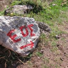 Gerakovuni is the highest point of Mount Othrys. We started in Almyros, about 19 km north of the peak.We did not follow the paint marks but used the GPS to bring us more directly to the summit. I'm not sure that was the best idea. I believe we may have passed through these two waypoints on the way to the summit.