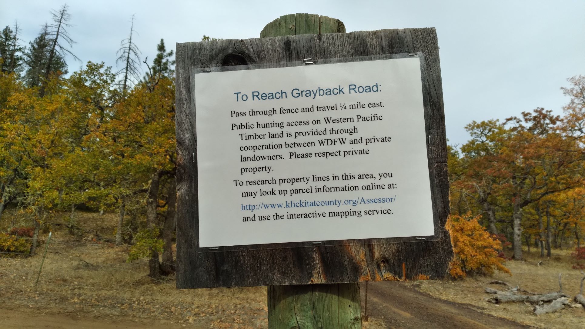 The "Welcome" sign pictured below on DNR land requiring display of a Washington Discover Pass does not describe that the majority of the route to the summit is on private land and only the lower portion of the road is on public land. The "upper trailhead" described in some blogs has also been reposted as "No Trespassing" and the second photo describing a cooperative agreement between WDFW and Western Pacific Timber is actually no longer on land owned by Western Pacific Timber. Western Pacific Timber has sold many parcels to individuals that are not interested in public access.