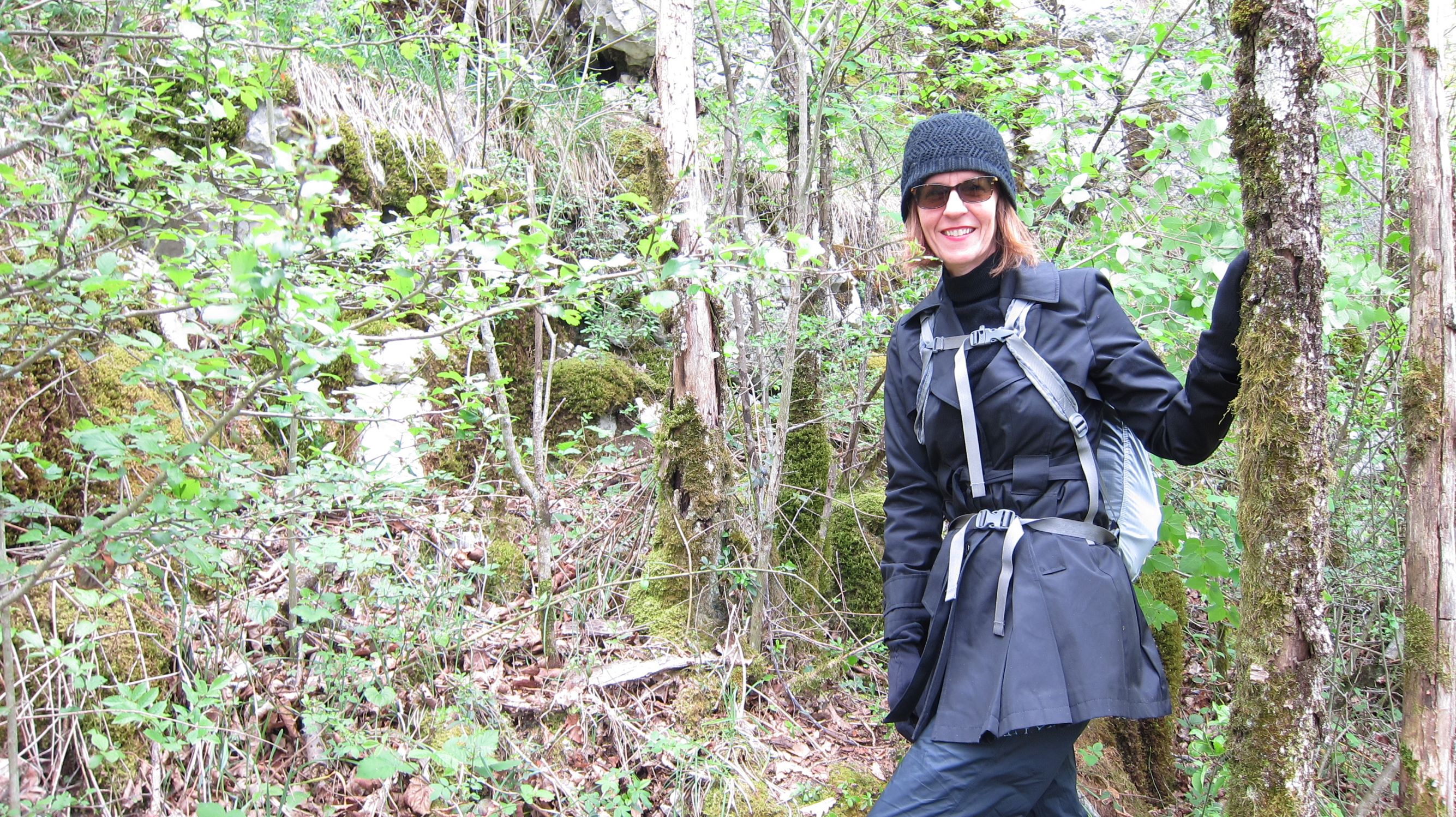 We parked at a Y intersection near 45.5789° 5.7371° as the road heading to the NW was a bit rough for our rental car. After about 370 meters we came across the GR9 and took this trail south about 300 meters to a high point where a social trail led towards the summit. The trees and brush are quite dense and "Mode Sanglier" was called for. We were able to get within about 35 meters of the summit and into the activation zone at a vertical cliff about four meters high. We set up HF there in the trees by throwing the antenna wire. There was T-Mobile service for spotting.