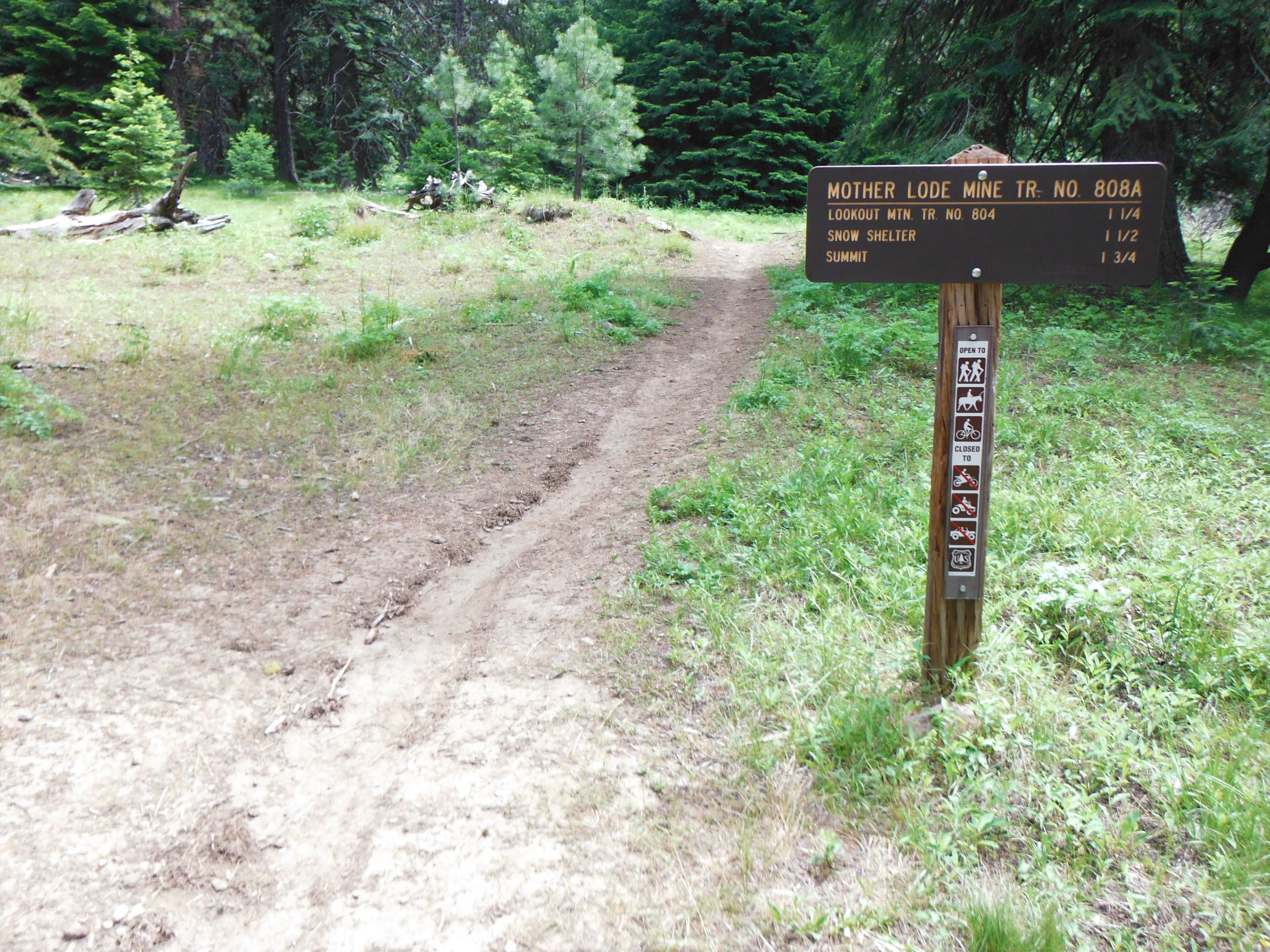 There are several trailheads for Lookout Mountain - you passed one close to the Ranger Station - the Lower Trailhead is 8-miles to Lookout Mountain on Trail #804. The Upper Trailhead meets at the first parking area off Canyon Creek Road for about a 4-mile hike. These directions are for the Mother Load Mine Trail of 1.75 miles one-way.