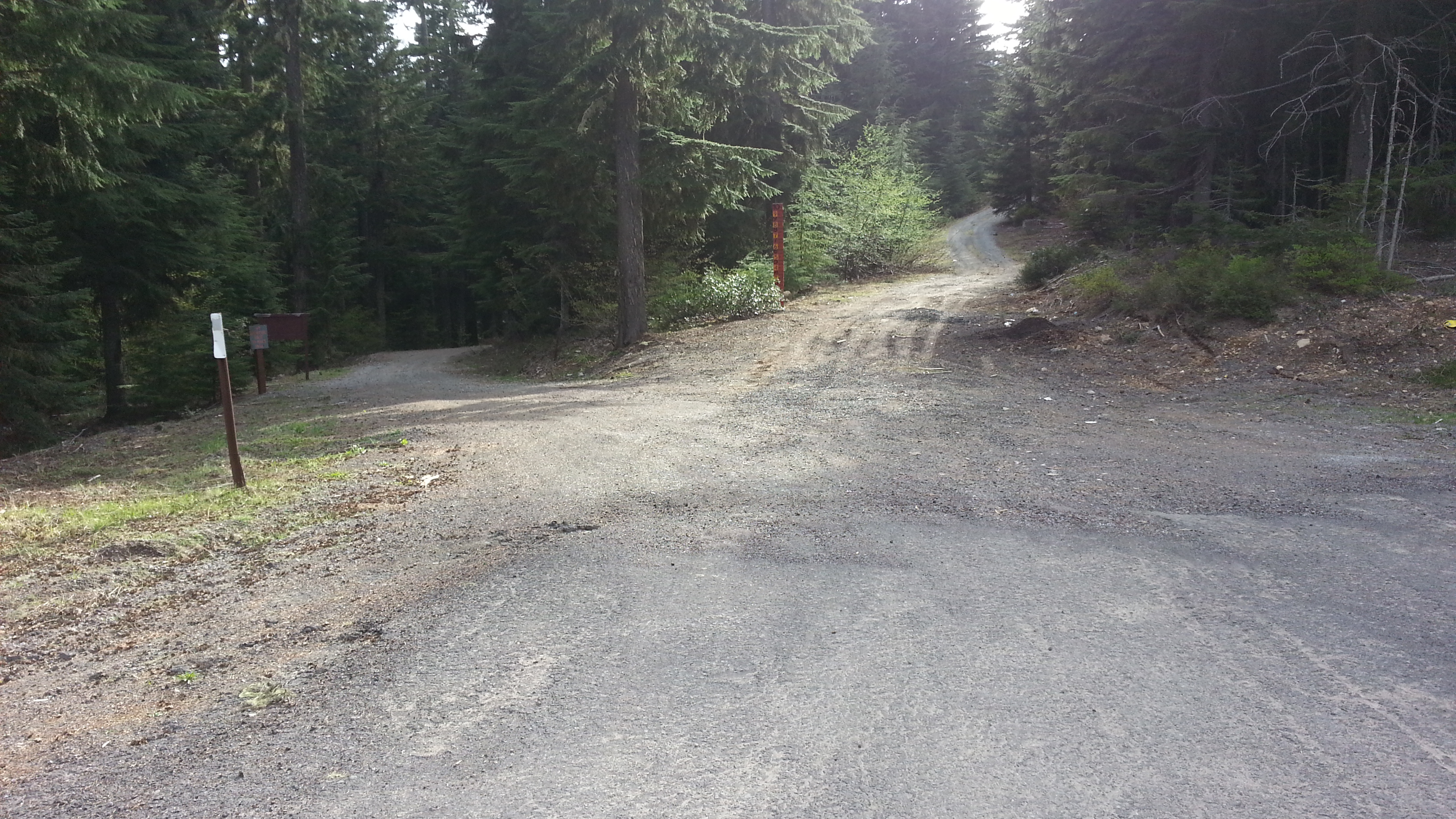 A bit past milepost 63 and just before Blue Box Pass there is a right turn onto two forest roads - take the right one (pictured). A carefully driven passenger car might be able to navigate this road, but having high clearance would make it easier. And the distances are reasonably short so parking when the road gets too rough and walking a mile or so on a forest road could be an option.