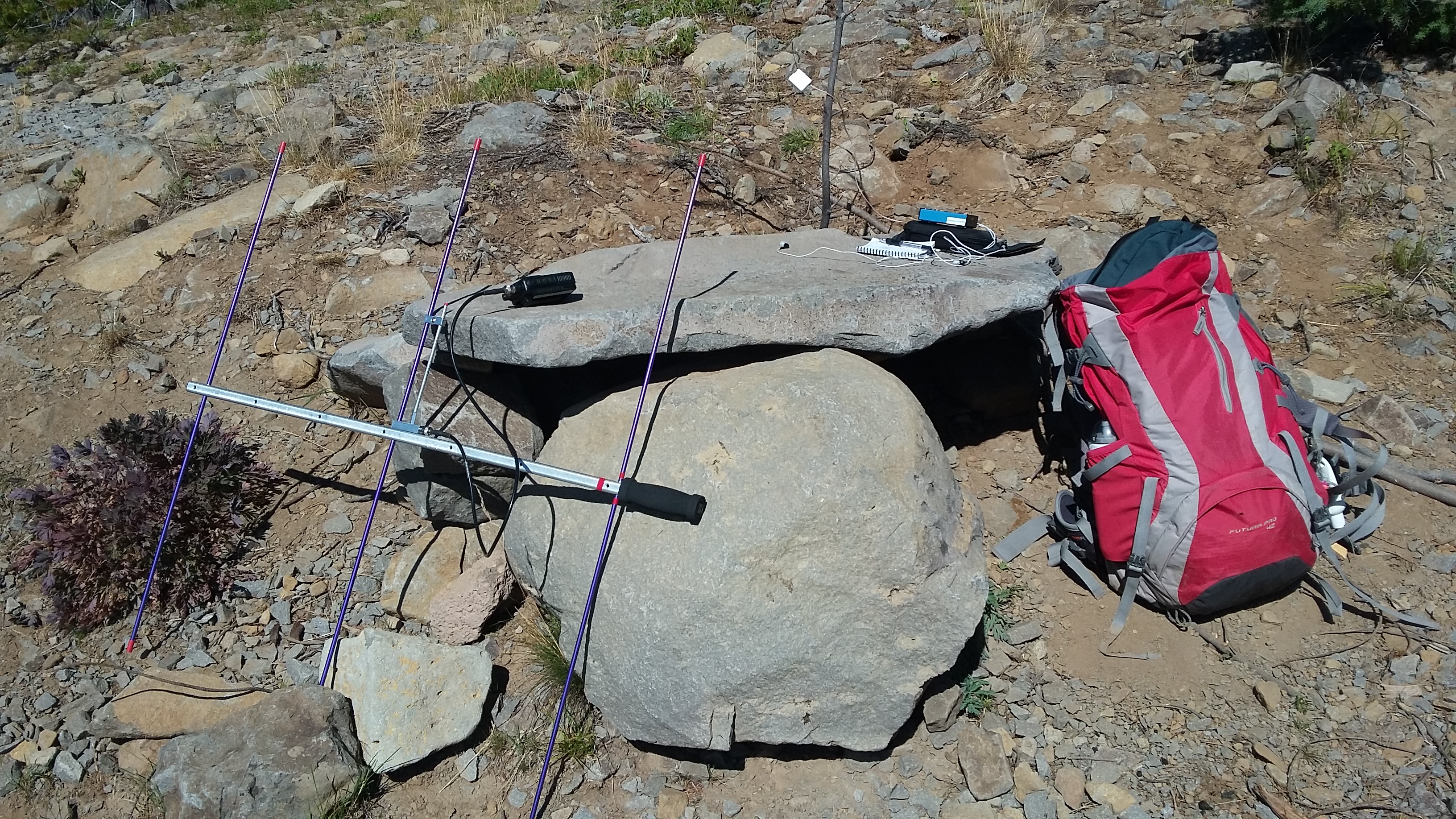 Peak 4816 is a near drive-up summit a bit east of Mount Hood, accessed mostly on paved Forest Service roads. The summit area has an small but interesting rock pinnacle. You should consider this summit in the Mount Hood 2m FM "dead zone" as we were not able to raise anyone on 146.52 except a sked with a nearby S2S. Also, APRS and cell service were marginal or non-existent, so that spotting our activations on HF were a real problem.
