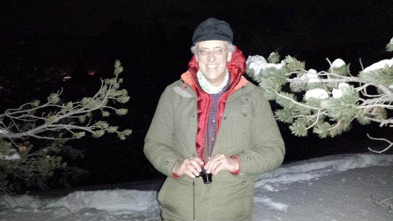 We chose one of the easier Helena-area summits (W7M/CL-161) – but still found it to be a winter challenge. The first challenge was getting into the parking lot – it took about 30 tries & several times of being hi-centered in the snow to blaze a path into the parking lot to find a parking spot that didn’t block the road. We got started with the hike at 3:00 (about 30-minutes late), and the hike up (30-minutes in the summer) took us 2-hours on snowshoes. Bill & I alternated breaking trail – which worked out great. The temperature was nice – it was -8°F in Helena, but likely a bit warmer up where we were.