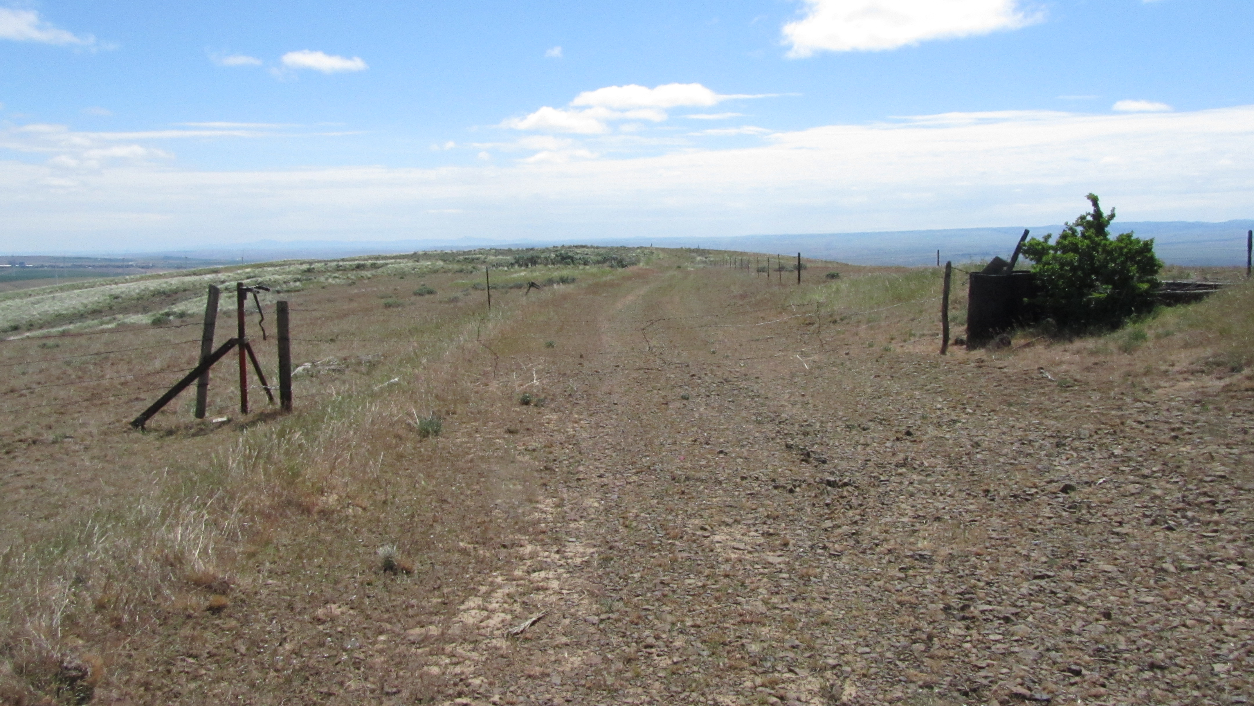 Zero Butte is just west of Condon, Oregon and is an easy drive-up summit. Take Highway 206 4.5 miles west from Condon and turn (left) west onto Richmond Road. Continue 1.5 miles to an unmarked dirt road heading off to the left. This is about where the unexpected subdivision ends and where what looks like a former military installation begins. The dirt road was easily passible in a passenger car for the 0.9 miles to a fence and a gate where the high point is located.