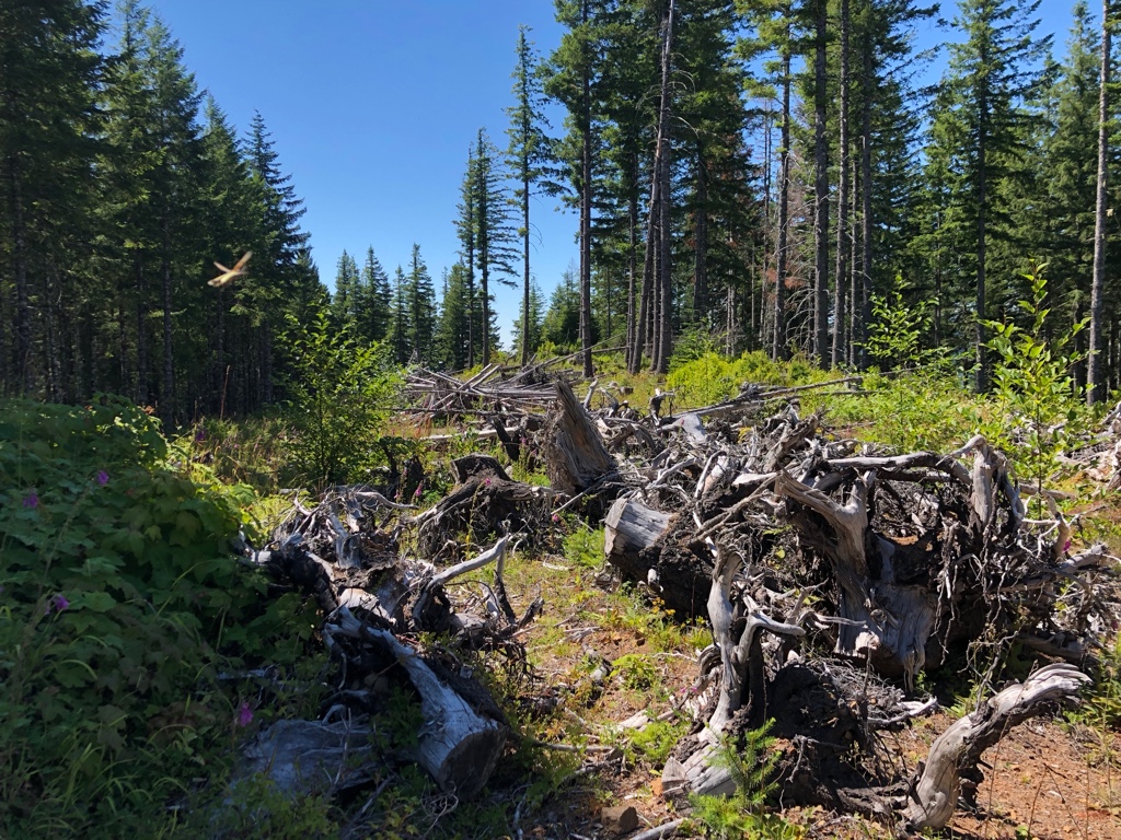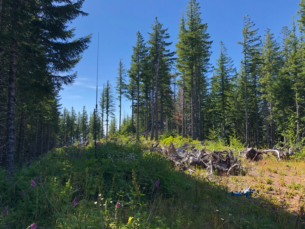 - There is a faint road south of here that you will have to walk to the summit proper. Why do you have to walk it? Because at some point in the distant past, the logging operation that worked this hill piled huge piles of stumps, logs, and detritus all along the roadbed. You’ll have to cross many of these to get to the activation operating area – about 250 yards.