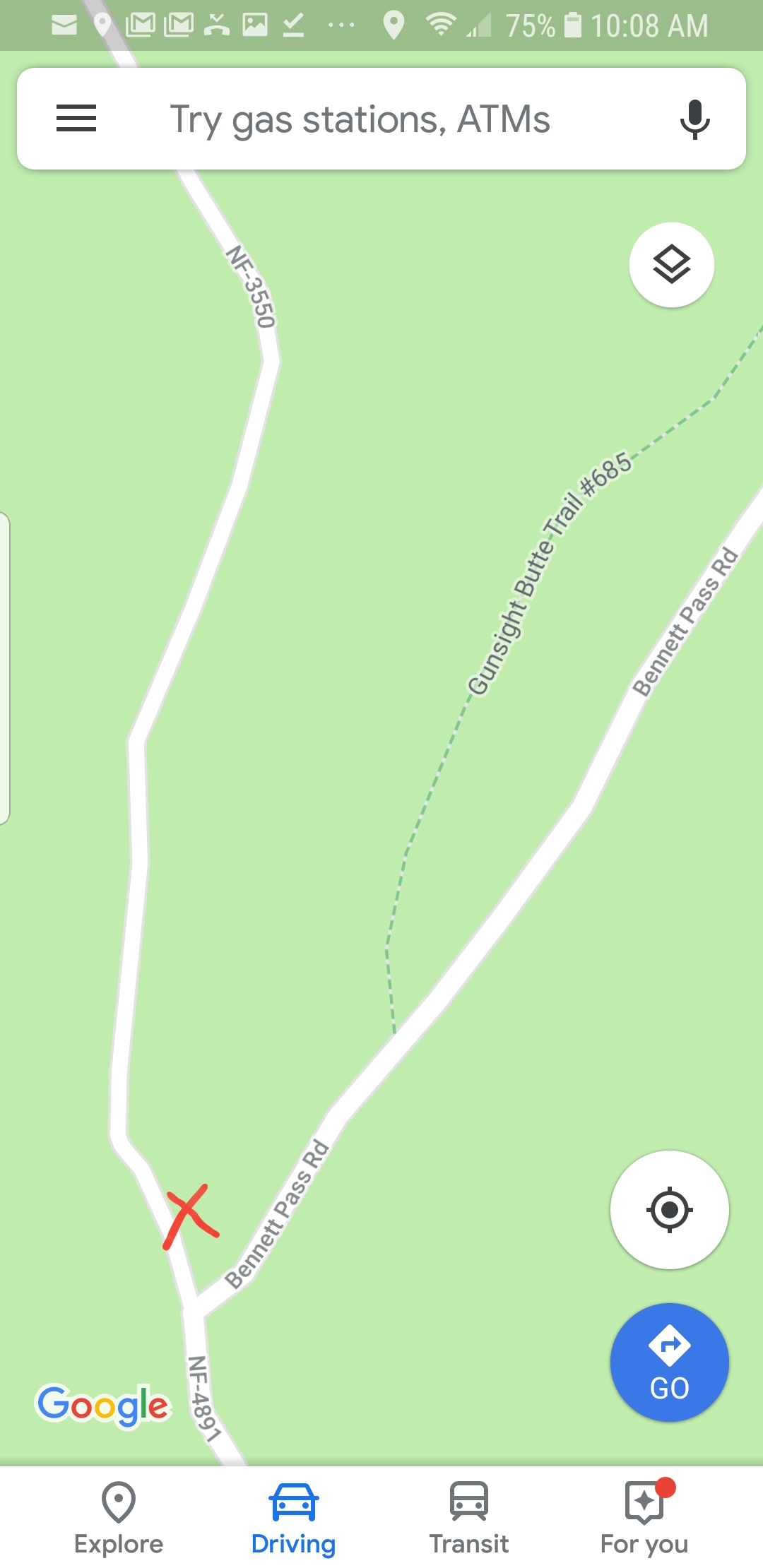 Getting to the summit is pretty straightforward. From Portland take HWY 26 East to HWY 35 towards Hood River. Take 35 to Bennett Pass Trailhead/SnoPark and follow Bennett Pass Rd/NF-3550 to 45.27908, -121.59640. When you arrive at the coordinates, the trail will be on your left. This is where you will start your hike on Gunsight Butte Trail. Google Maps shows the start of the trail further North than it really is. X Mark's the spot on uploaded map screenshot. Have the summit coordinates in your GPS so you don't hike past it.