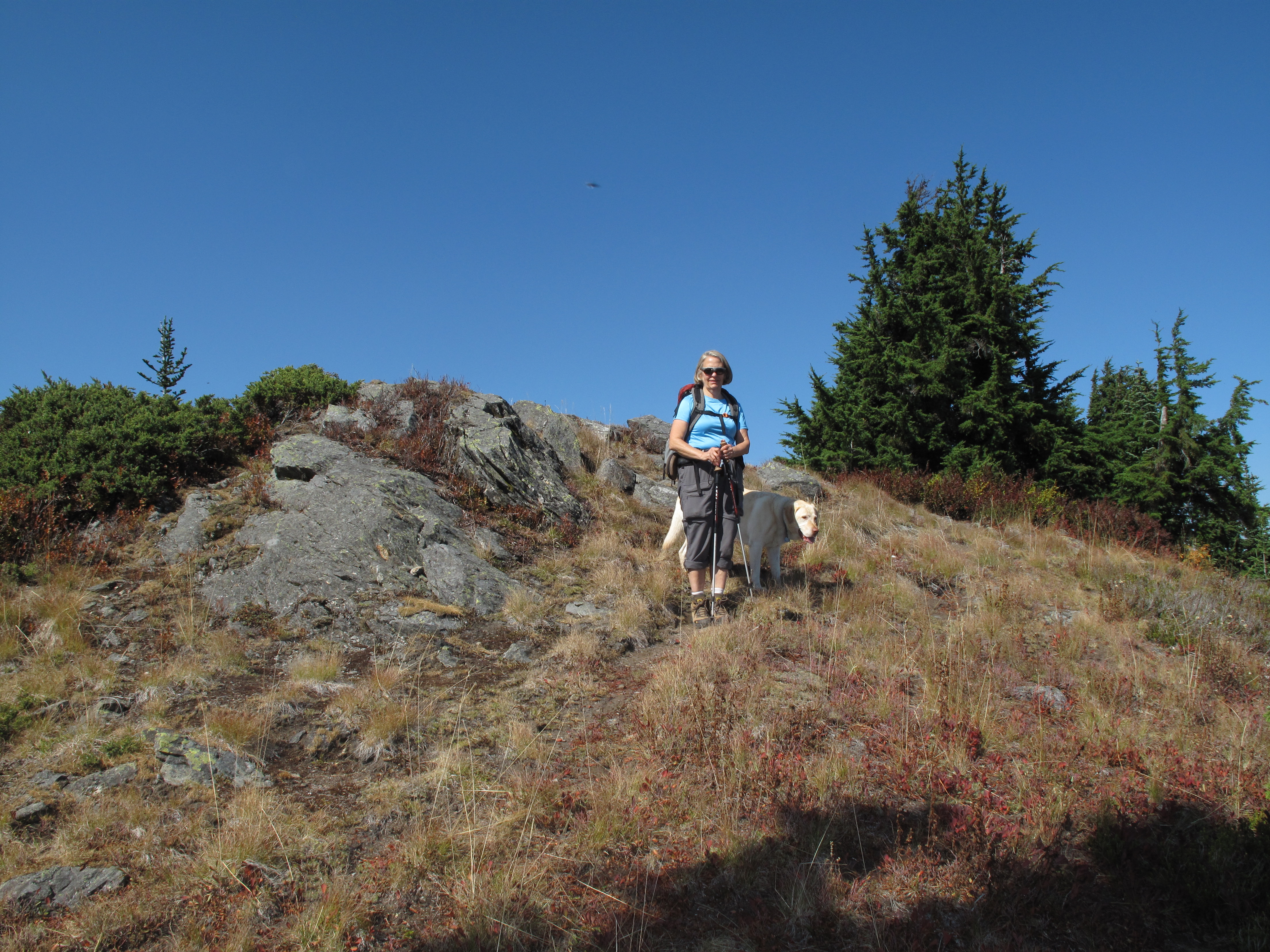 A clear, sunny and warm day; beautiful fall colors of yellow, gold, red and purple; a successful activation; and the company of my wife, Sharon and Dexter the SOTA Dog - all made for a very pleasant outing. Summit Chief Mountain is a 6 point SOTA Summit in Chelan County, above the Stevens Pass Ski Resort area. It is accessed via highway entirely, being located at Stevens Pass, on SR 2.
