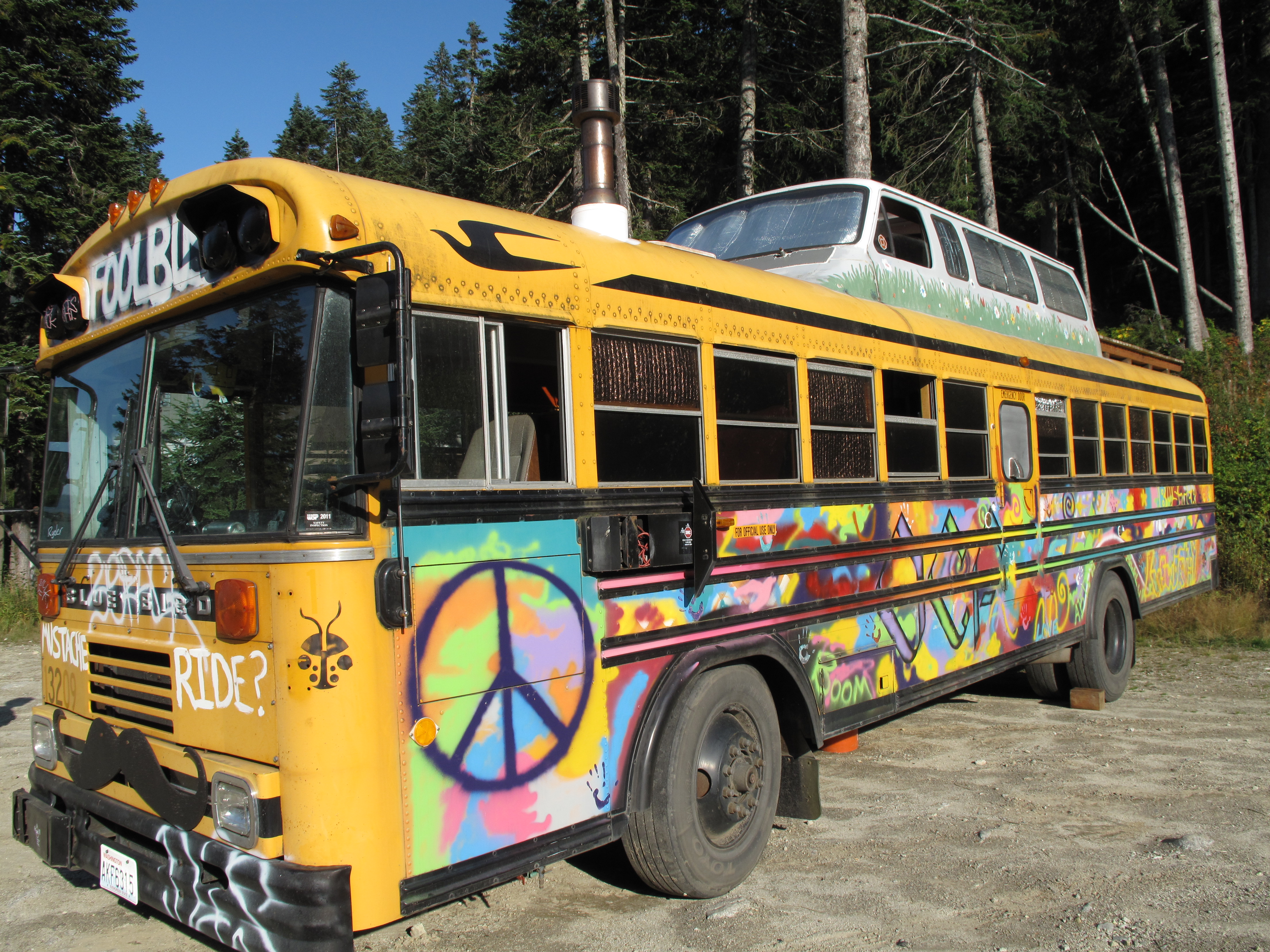 Return trip was a little quicker because of trail familiarity. At the TH we found a "Hippy Bus" parked in the gravel parking lot, with a sign greeting PCT Through Hikers to: "come and joint the party". We politely declined, but took some pictures...