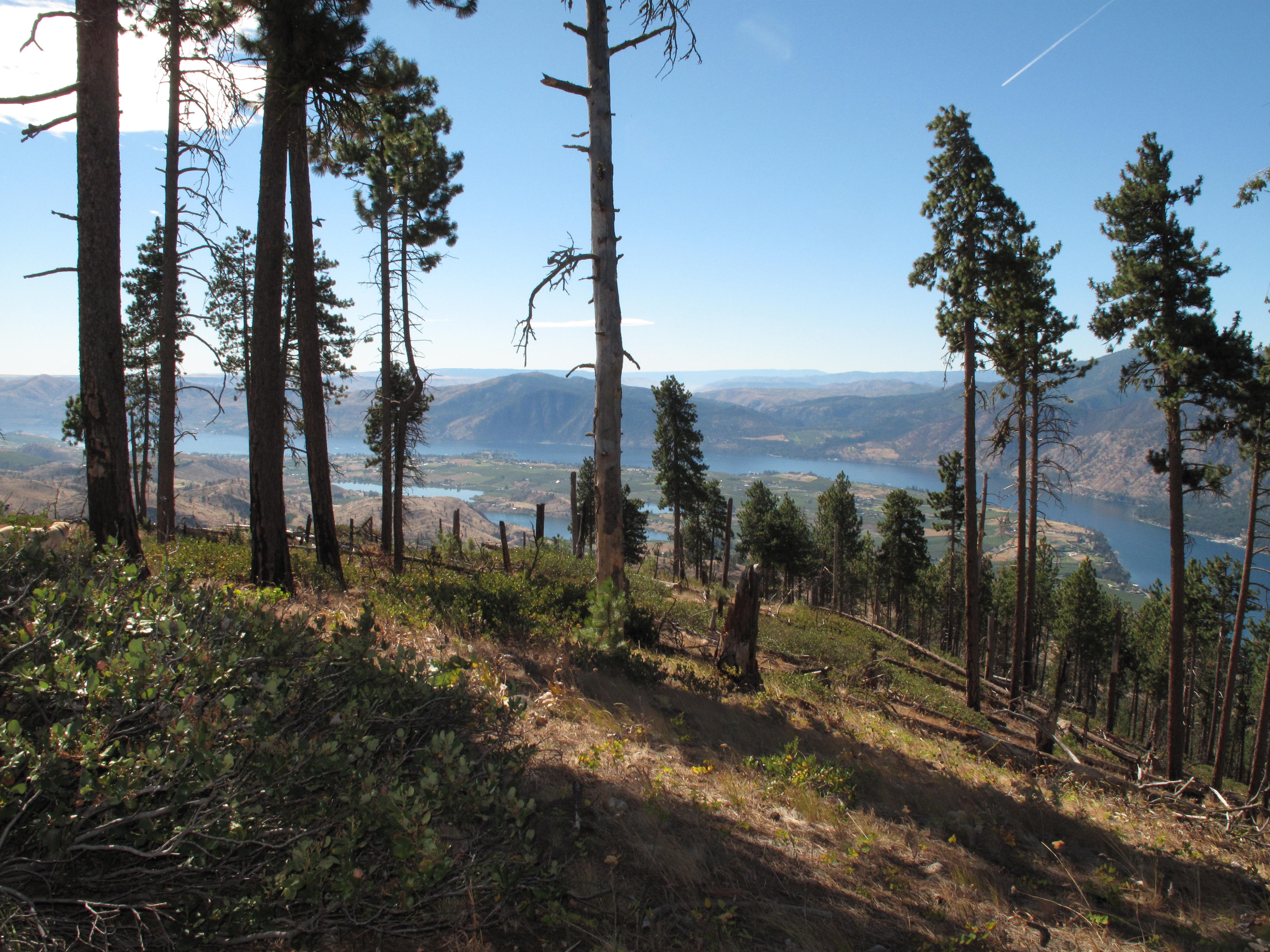 First SOTA Activation of Fourth Of July Mountain, a 4 point SOTA summit above the town of Manson, Washington, was accomplished on Saturday, September 10, 2016.  On a weekend trip to visit with our friends who have a vacation home in Manson, we took some time to Activate this peak.  The overall terrain is quite dry and arid, especially this late in summer.  The trail itself is non-descript, and the redeeming aspect of the activation are the great views from the upper slopes and summit of the mountain.  The weather was quite warm, and we were happy to have gotten a relatively early start.