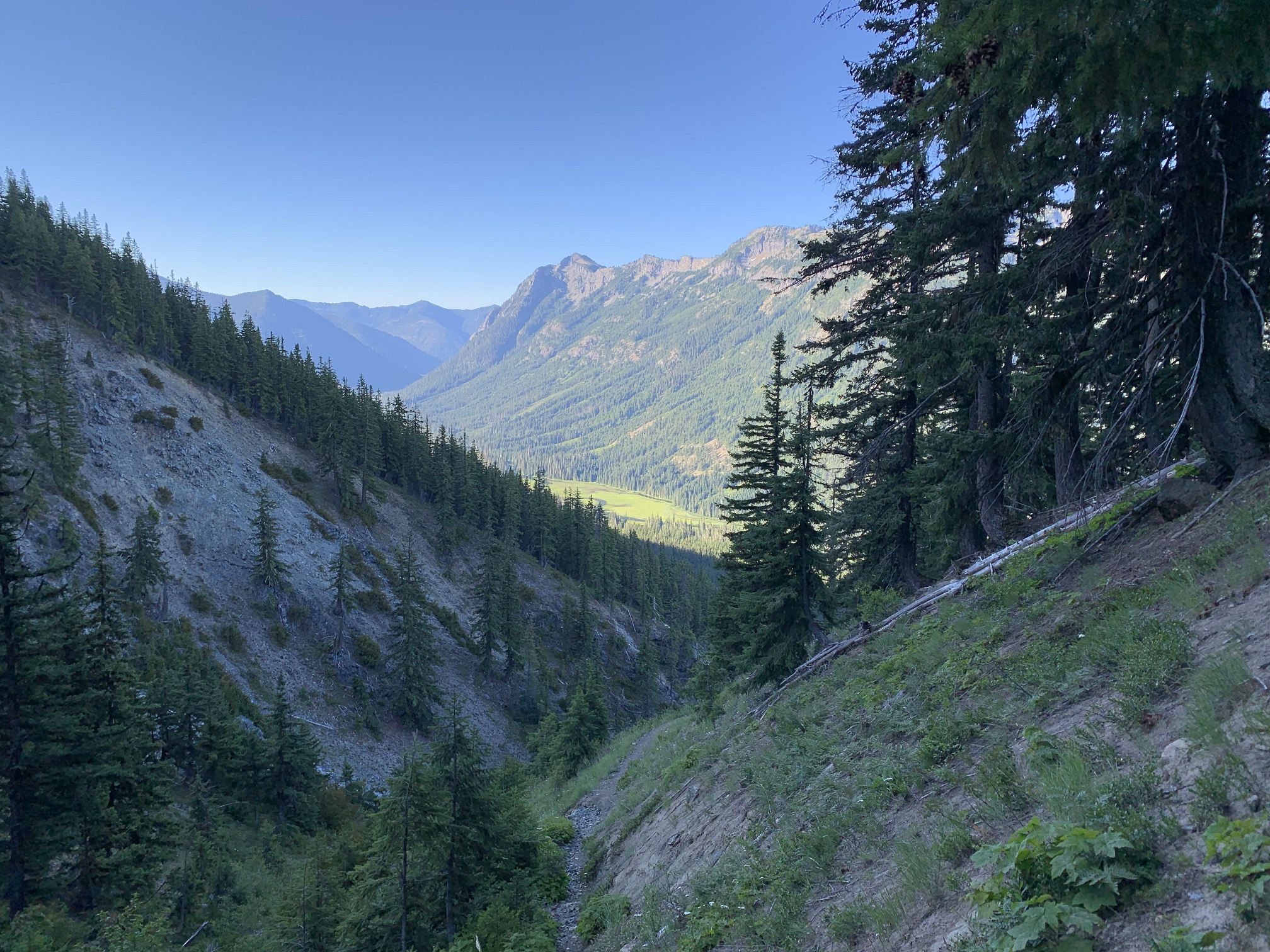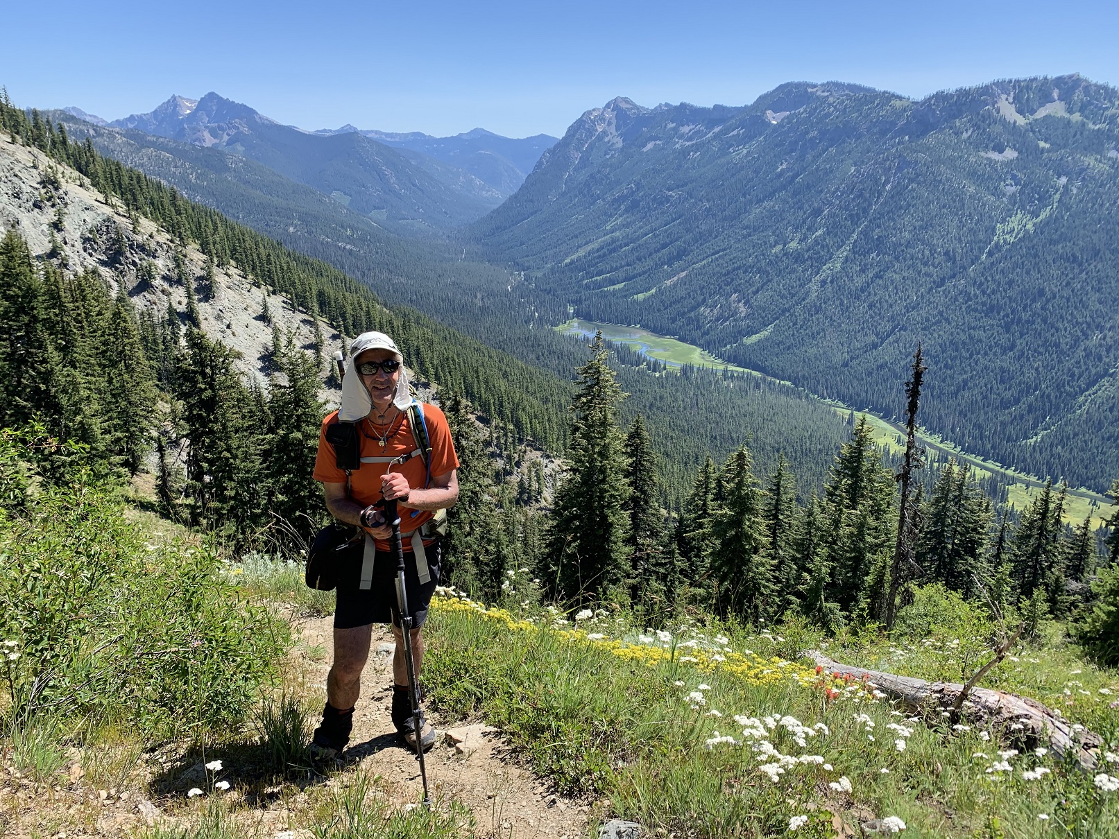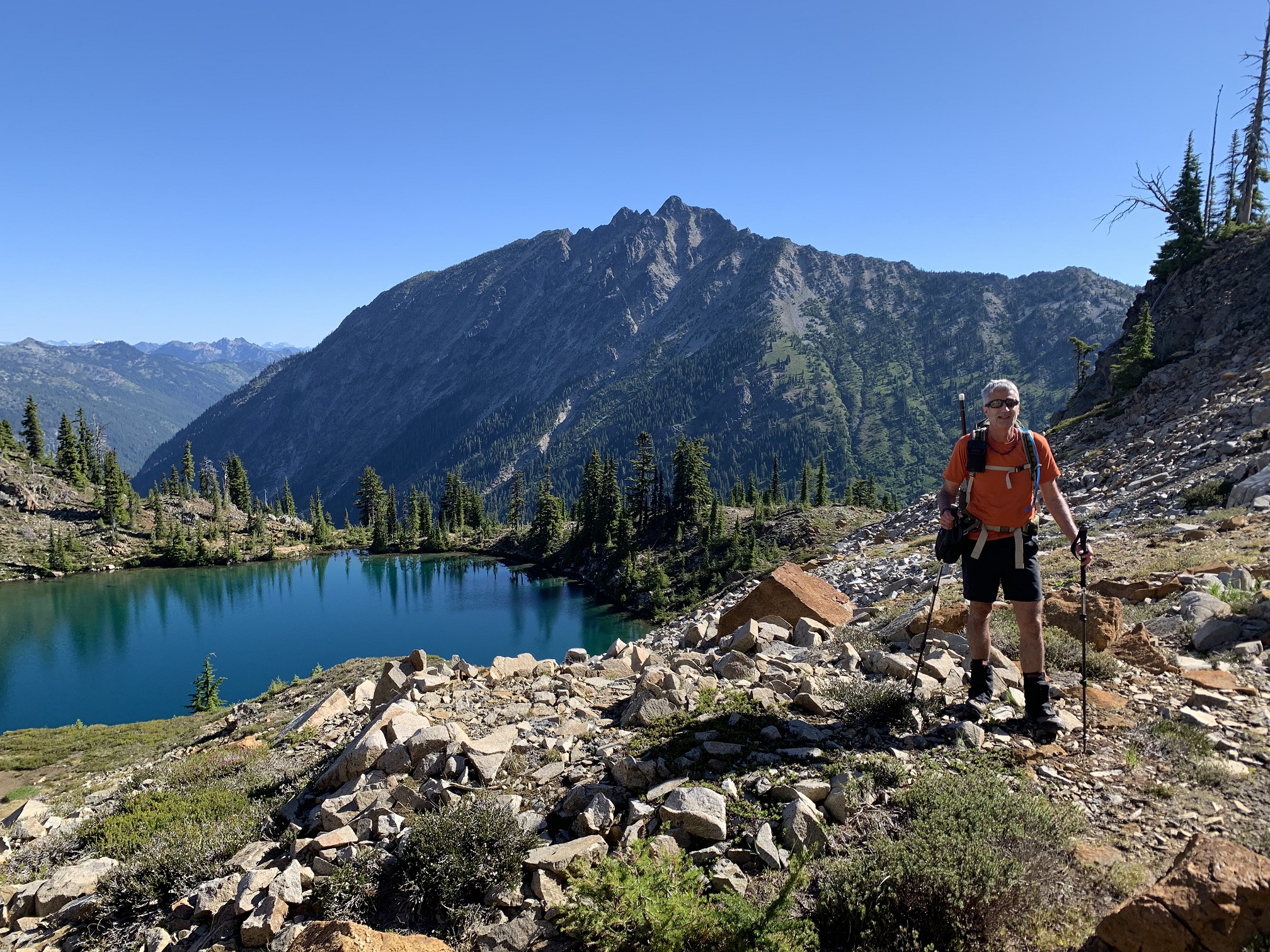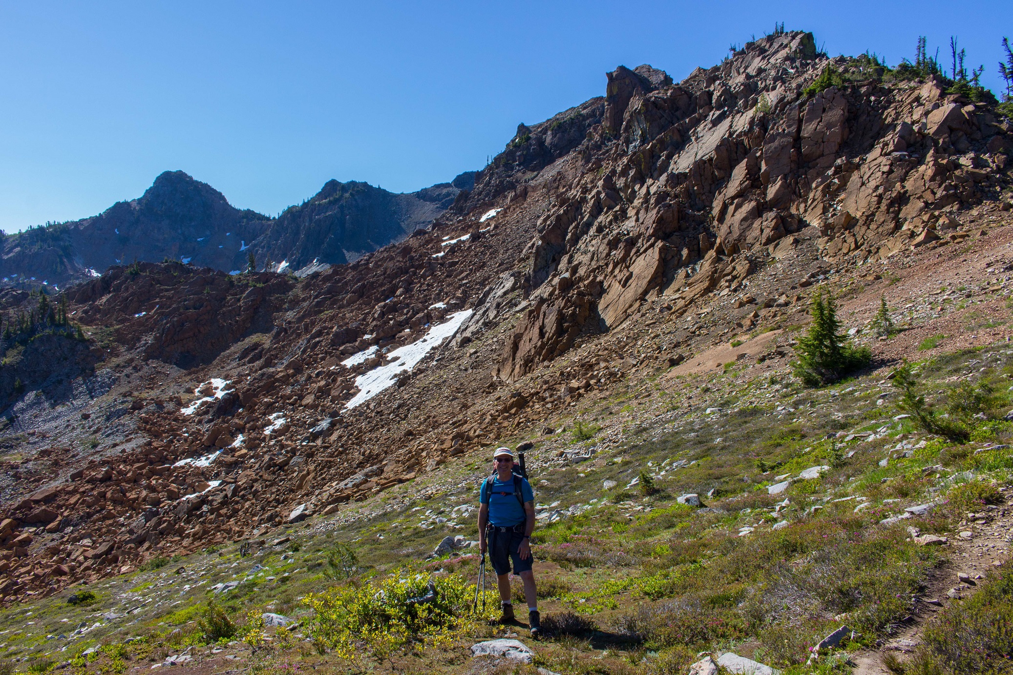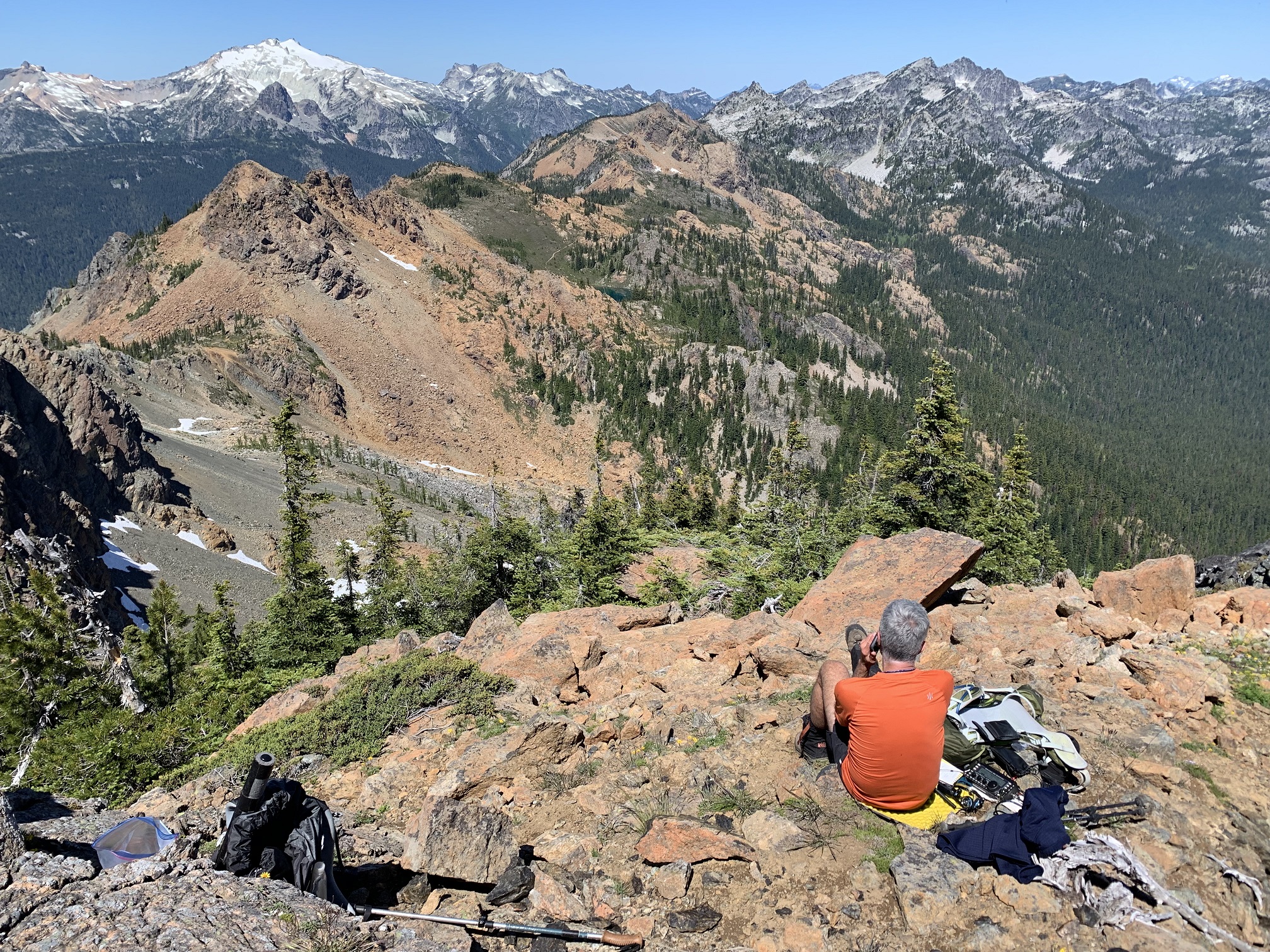 After a successful Activation, with a few S2S contacts, we soaked up the fantastic views, ate lunch and headed down without incident.  This time we took the steep scree slope from the Col that we had bypassed on the way up.  It was not as steep or as loose as it looked from a distance.  We stopped at Sprite Lake to filter water, eat and refresh.  The hike down from Paddy Go Easy Pass was tedious as we were heading down in the afternoon sun, on the relentless switchbacks that lose 2,800 feet to the Cle Elum River Valley, far below.