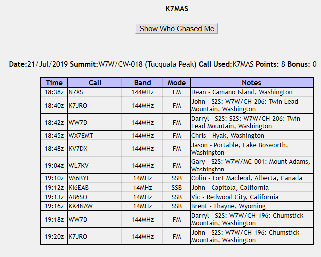 As usual, I'd like to thank the Chasers I worked!  Contact Log Attached.