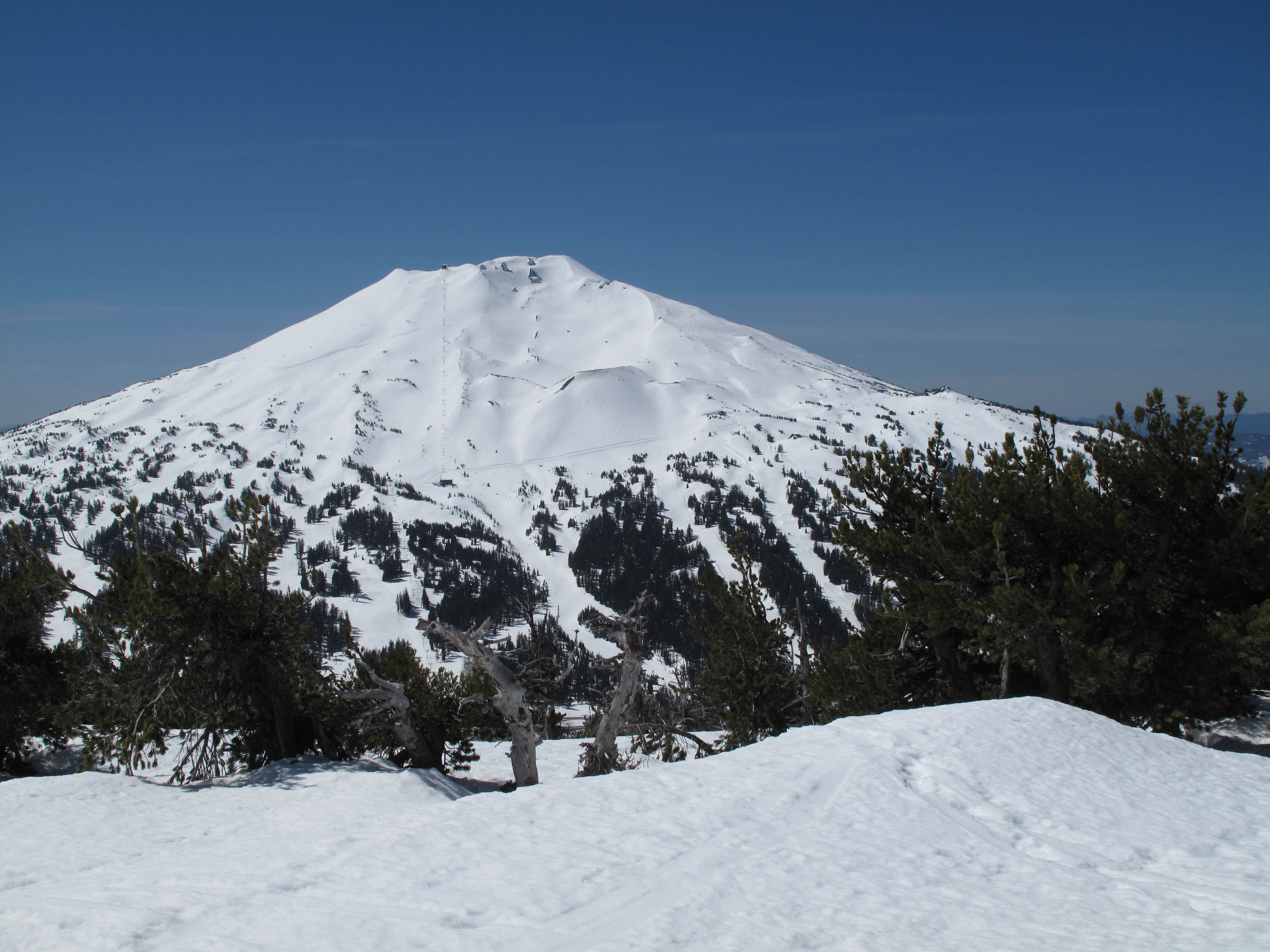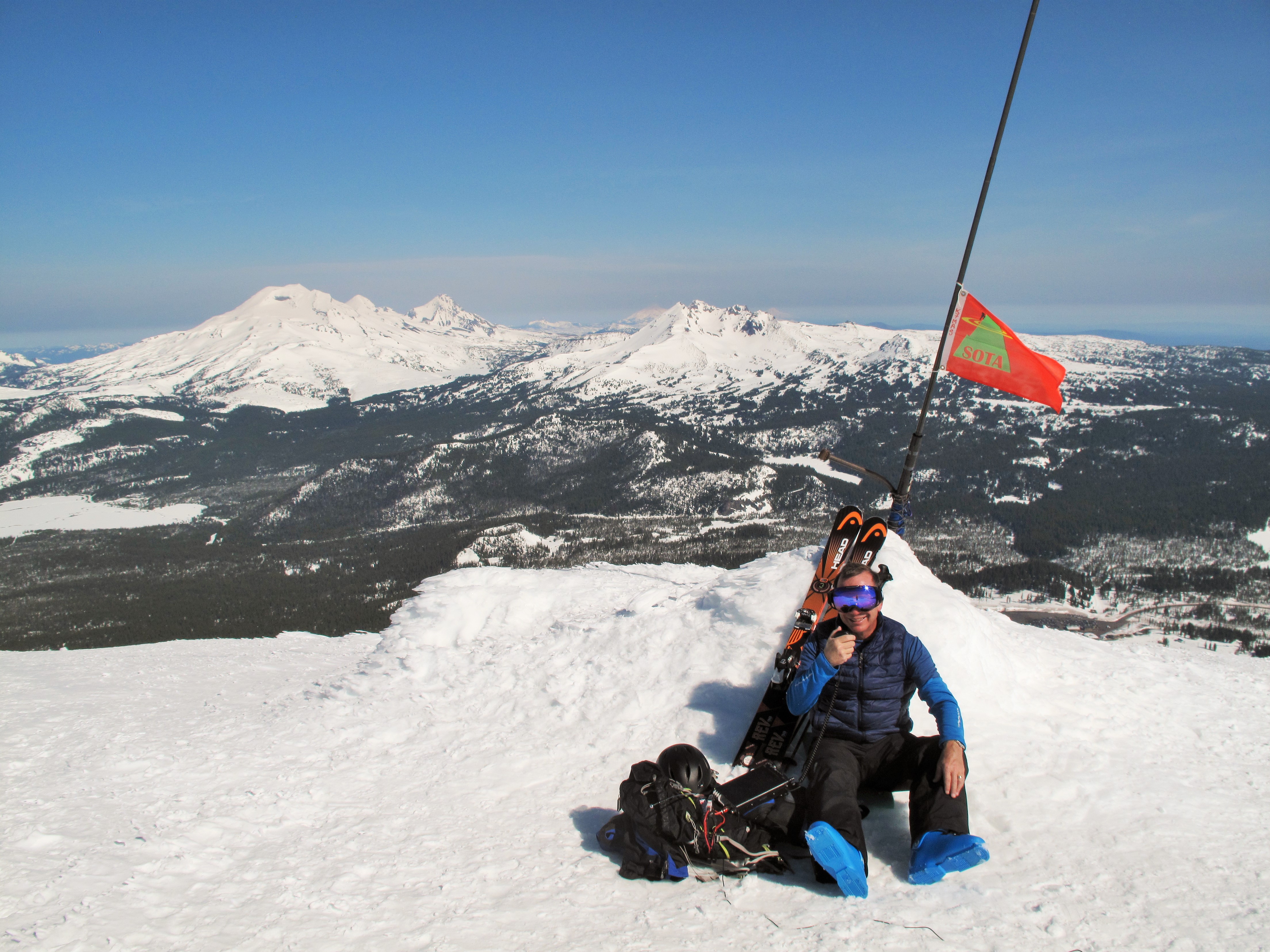 3 X 3 X 3 X 3 X 3 = Three Activations in three days with three, 3X3 (weak signal) contacts, amongst about 50 contacts overall. During an early Spring vacation in the Bend, Oregon area, we enjoyed all that Central Oregon is famous for! Good spring skiing, snowshoeing, hiking, SOTA Activations, and a sampling of several of the more than 80 breweries that exist in the greater Bend area. This report, number 1 of 3, deals with the Activation of Mount Bachelor, 9,065 feet, 2,763 meters.