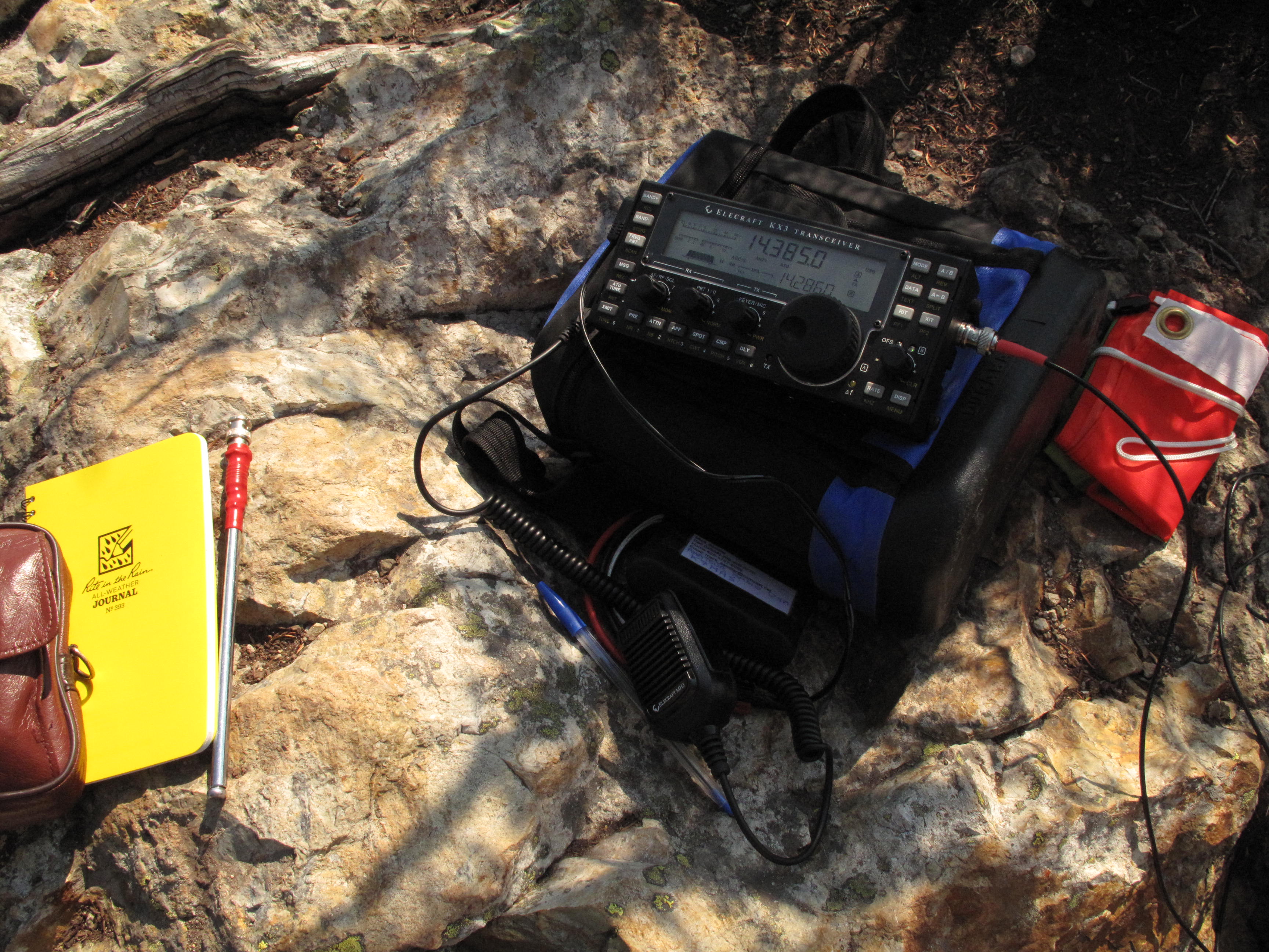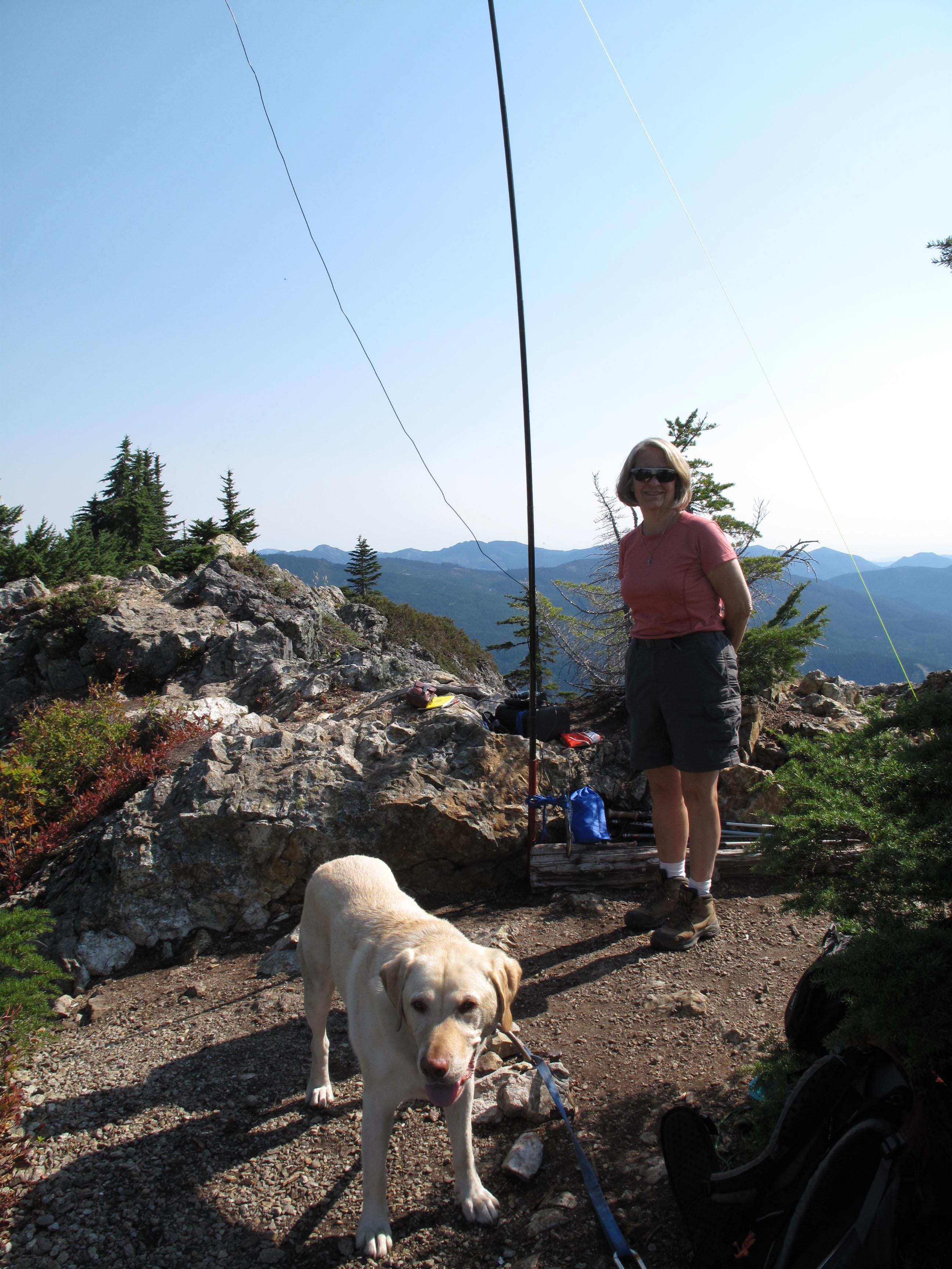 The summit area had sufficient area for deployment of my 40M – 20M Inverted V Linked Dipole antenna, although it became a little crowded in due course, as 10 other hikers arrived at the summit after I had started to operate. There were many very strong signals on the band due to some HF contests going on, so it was a little challenging calling CQ. I found it easier to jump in and make contacts with others calling CQ. I made contacts on 20M, 40M and 2 meters FM. The 2M contacts were satisfying as my contacts were both on other mountain summits (Burroughs Mountain, Mount Rainier National Park and Mount Townsend, Olympic Peninsula), although not SOTA activations. I tried to encourage SOTA participation.