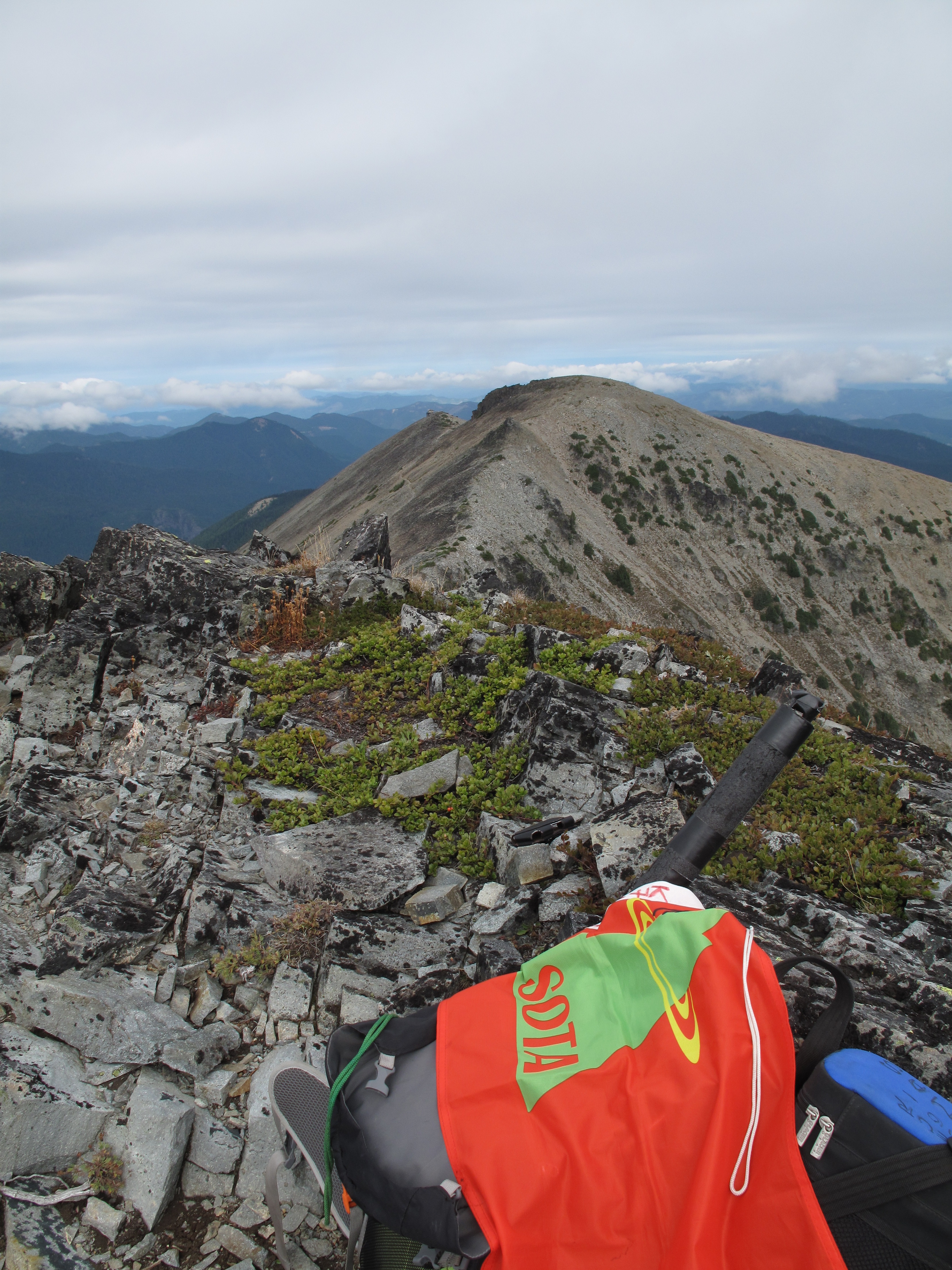 A crisp Fall-like day, sparse crowds and a successful activation made for a pleasant, if short day. The route to the summit, and the Activation itself were changed, and cut short, by a large heard of mountain goats which were straddling the ridge running between the SE Summit (incorrectly labeled as Mount Fremont) and the Middle Summit, (True Summit).