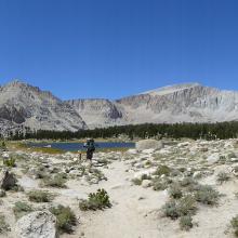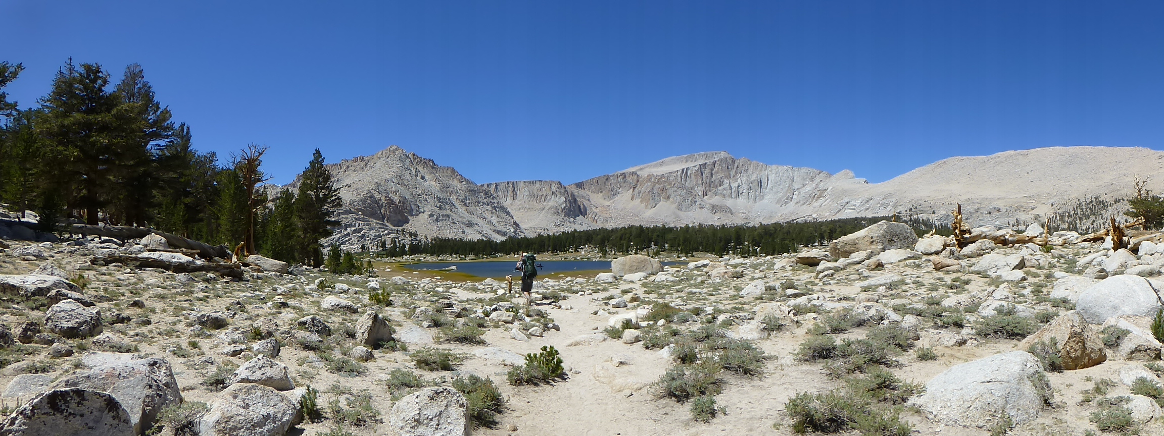 Day 1, hike from Horshoe Meadows TH at 10,050 feet to Base camp at Long Lake, 11,150 feet and 6.75 miles.