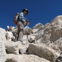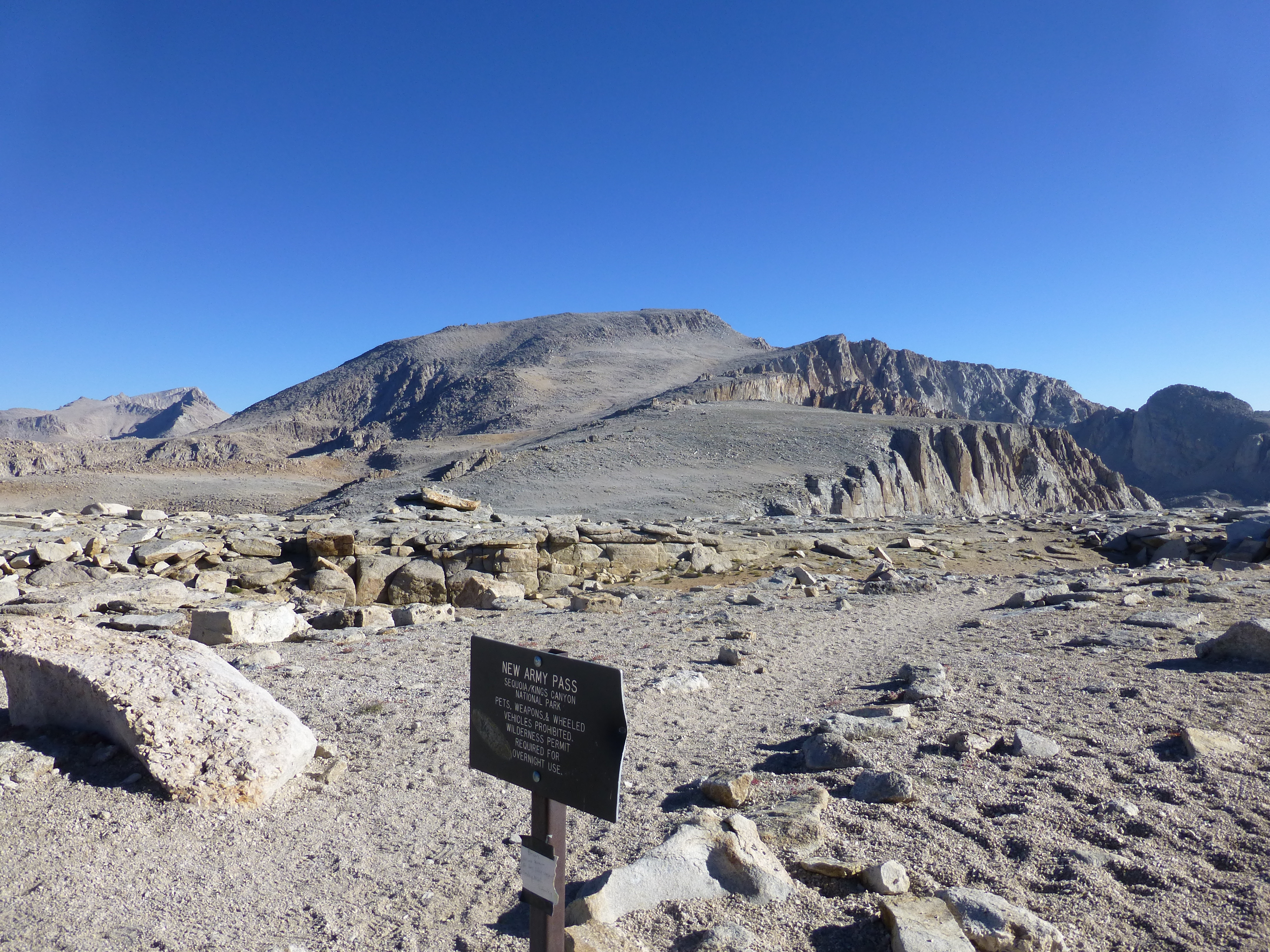 Day 2, hike / scramble to Cirque Peak, 12,900 feet via "New Army Pass". This is an easy ascent, except for dealing with the altitude. A little bit of headache and heavy breathing to suck in every bit of rarified oxygen. 1,750 feet elevation gain, 6 miles round trip.