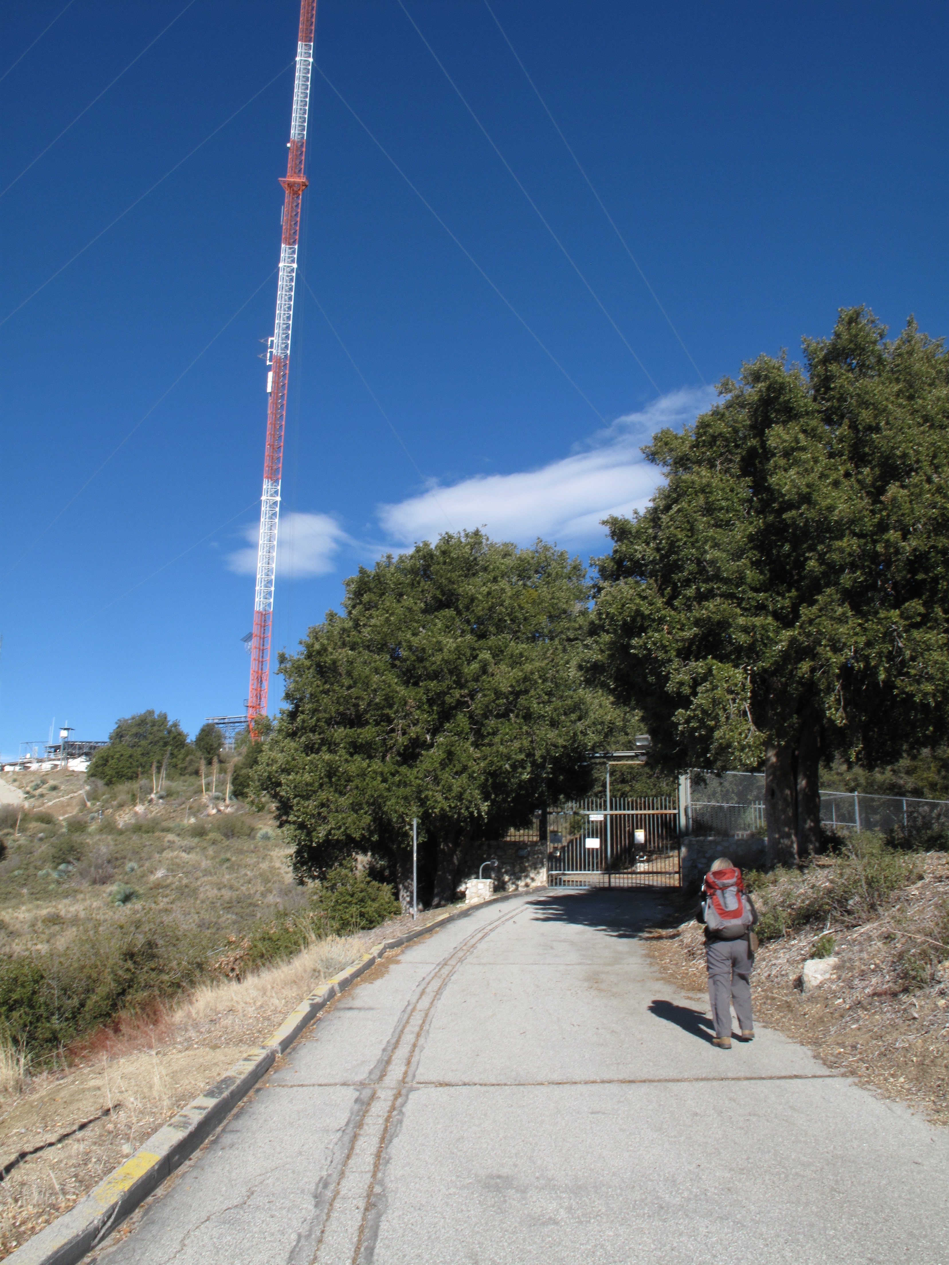 Access to Occidental Peak is vis the Mount Wilson Observatory Road, a paved road generally open year around.  Mount wilson Road itself is accessed via SR 2, the Angeles Crest Highway.  From where we were staying in Burbank, CA, it took about an hour to drive and arrive at the TH location.  Just look for the thousand foot red & white antenna, and park across the street.