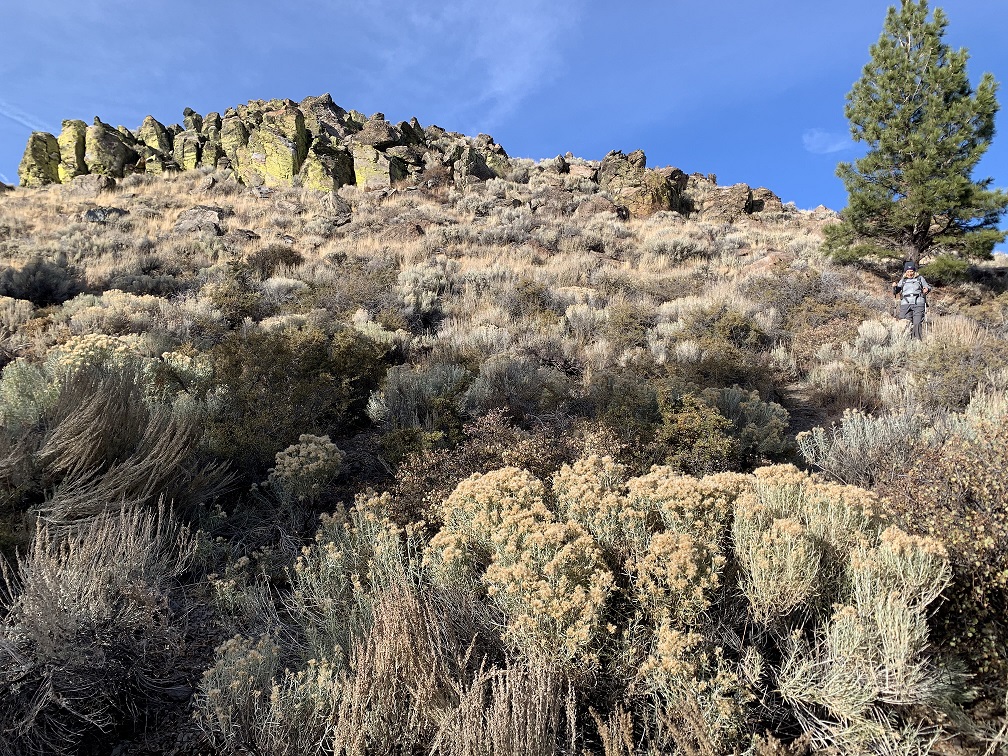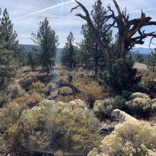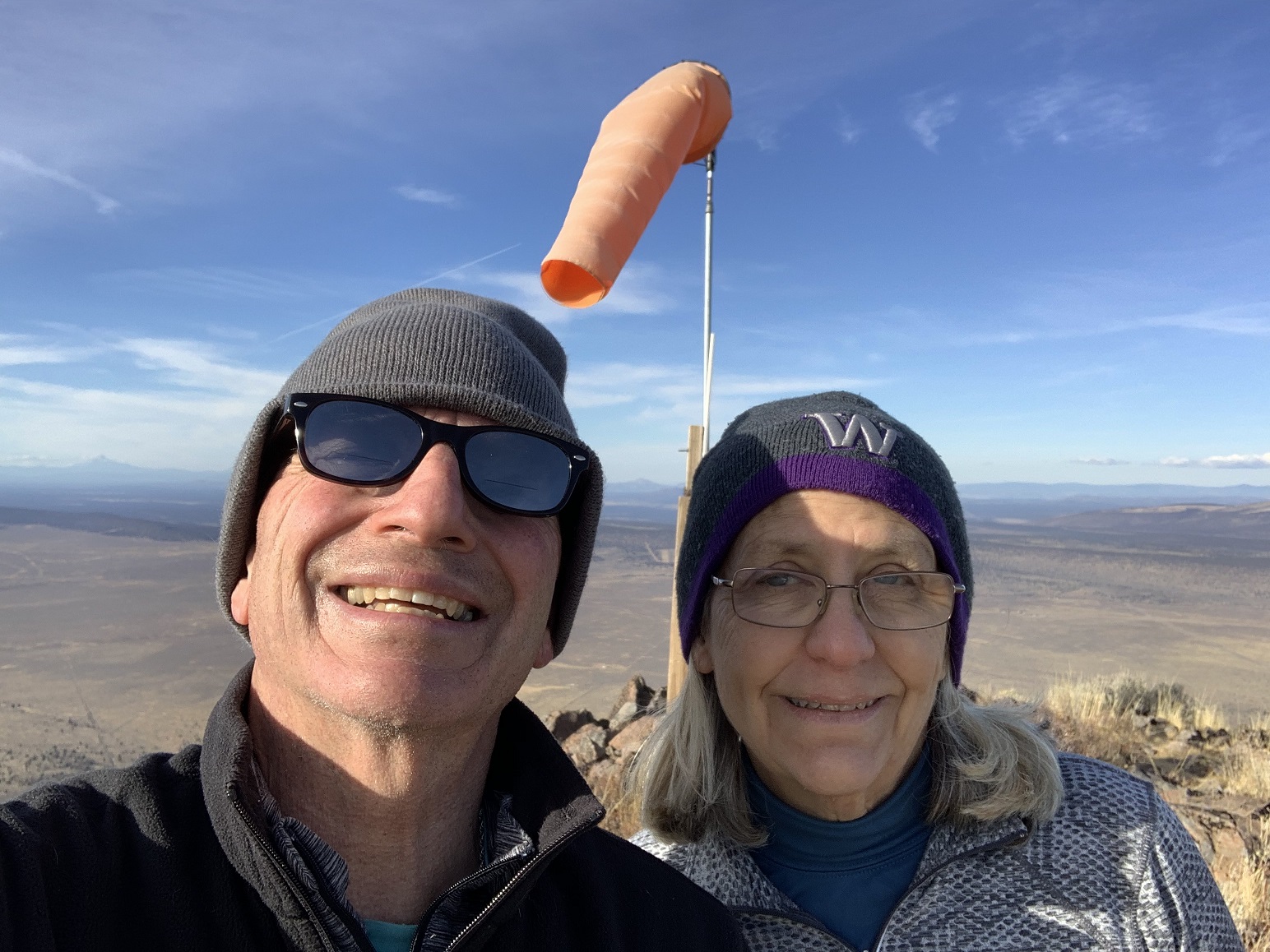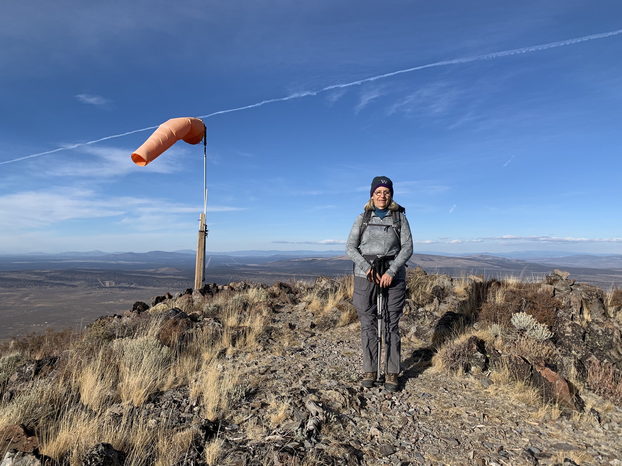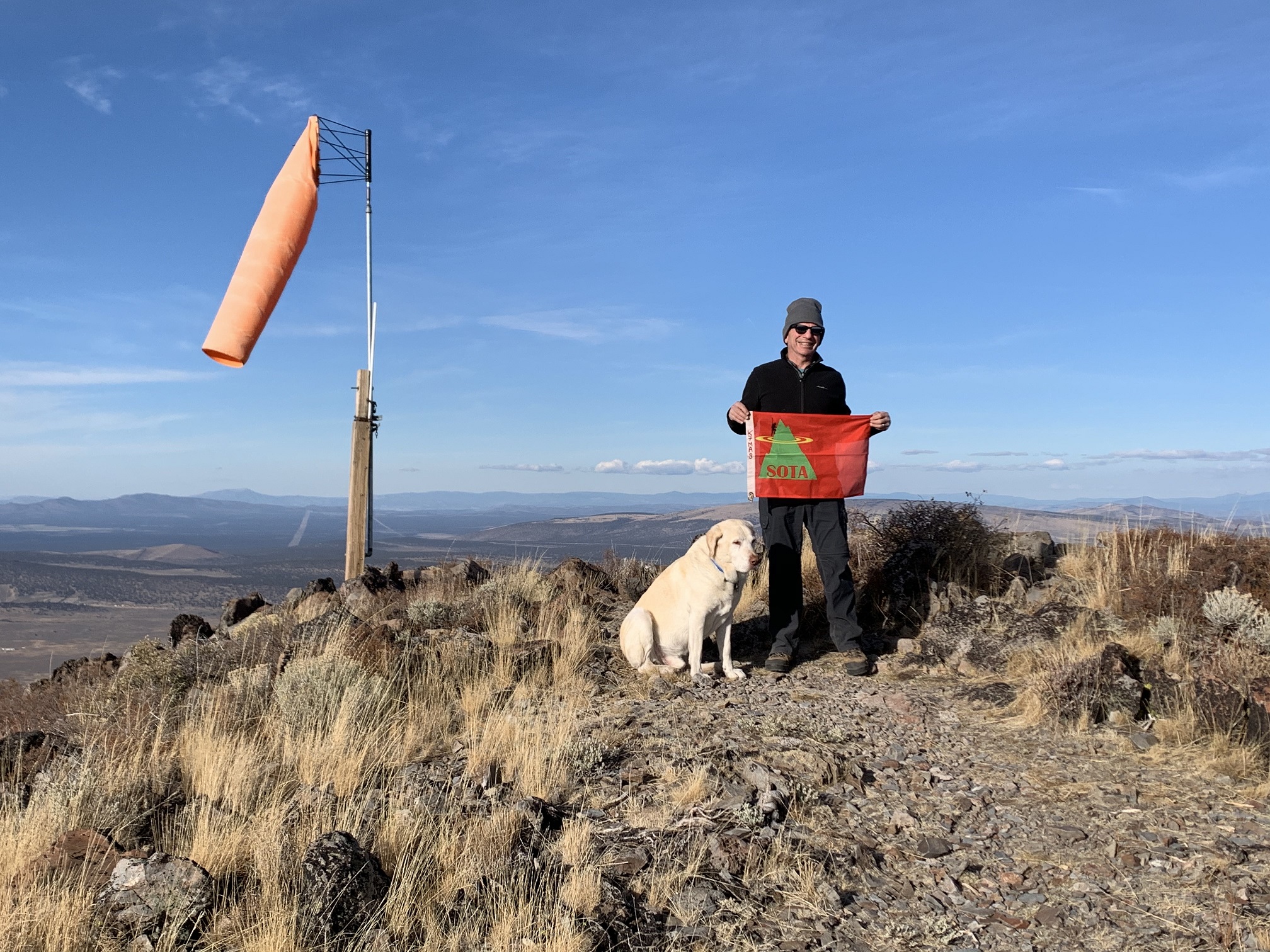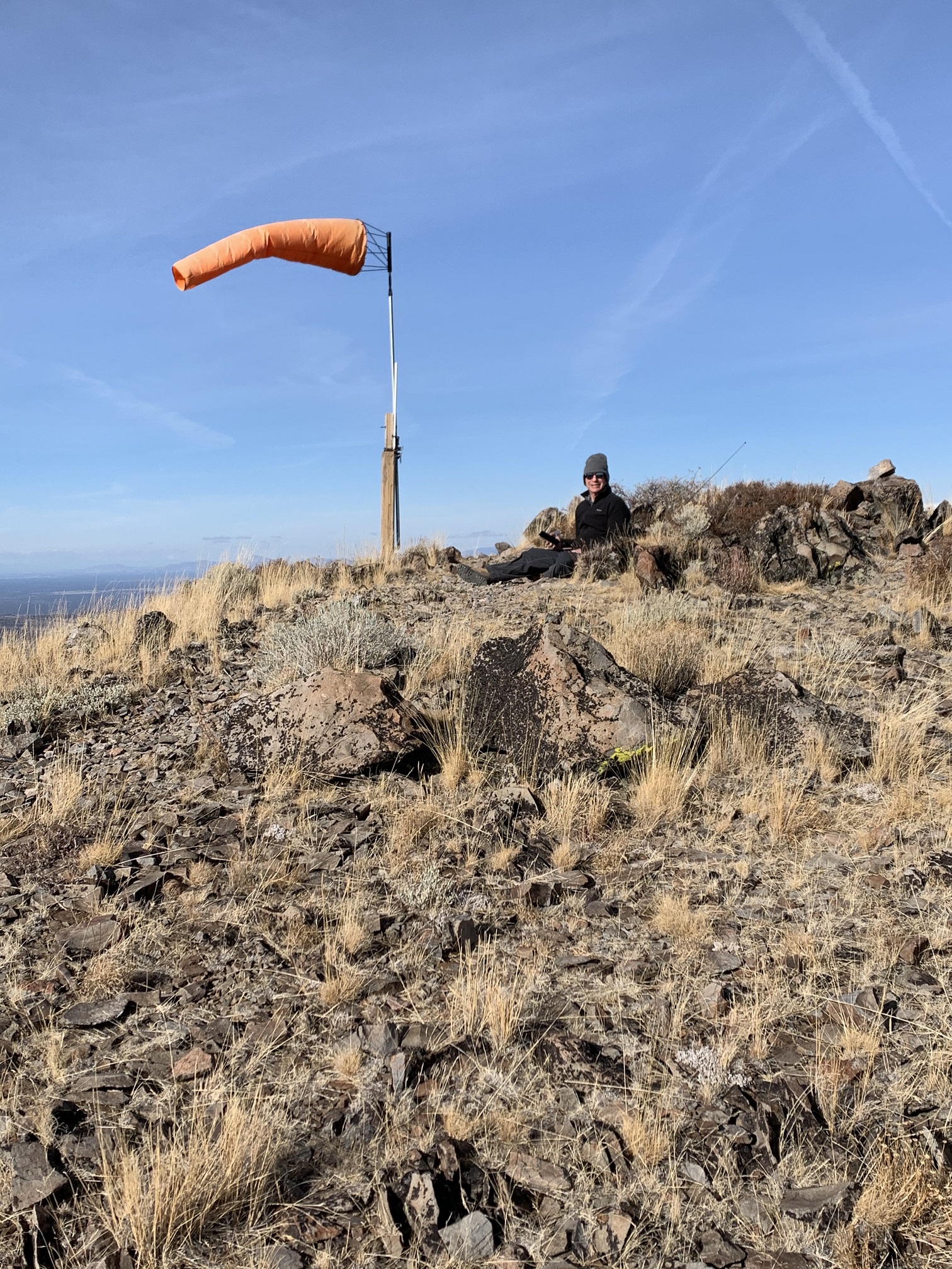 Between October 21 and October 30, 2020, we visited the Sunriver / Bend areas of Oregon. The cold but clear weather allowed us to Activate 8 SOTA summits in 6 outings. This report is one of a series, and deals with the Activation of Pine Benchmark, W7O/CE-068. A little earlier in the day, we had Activated Pine Mountain, W7O/CE-058, approximately 1.6 miles SE away, as the crow flies. This duo makes a fine single day Activation with minimal effort getting from one TH to the other.