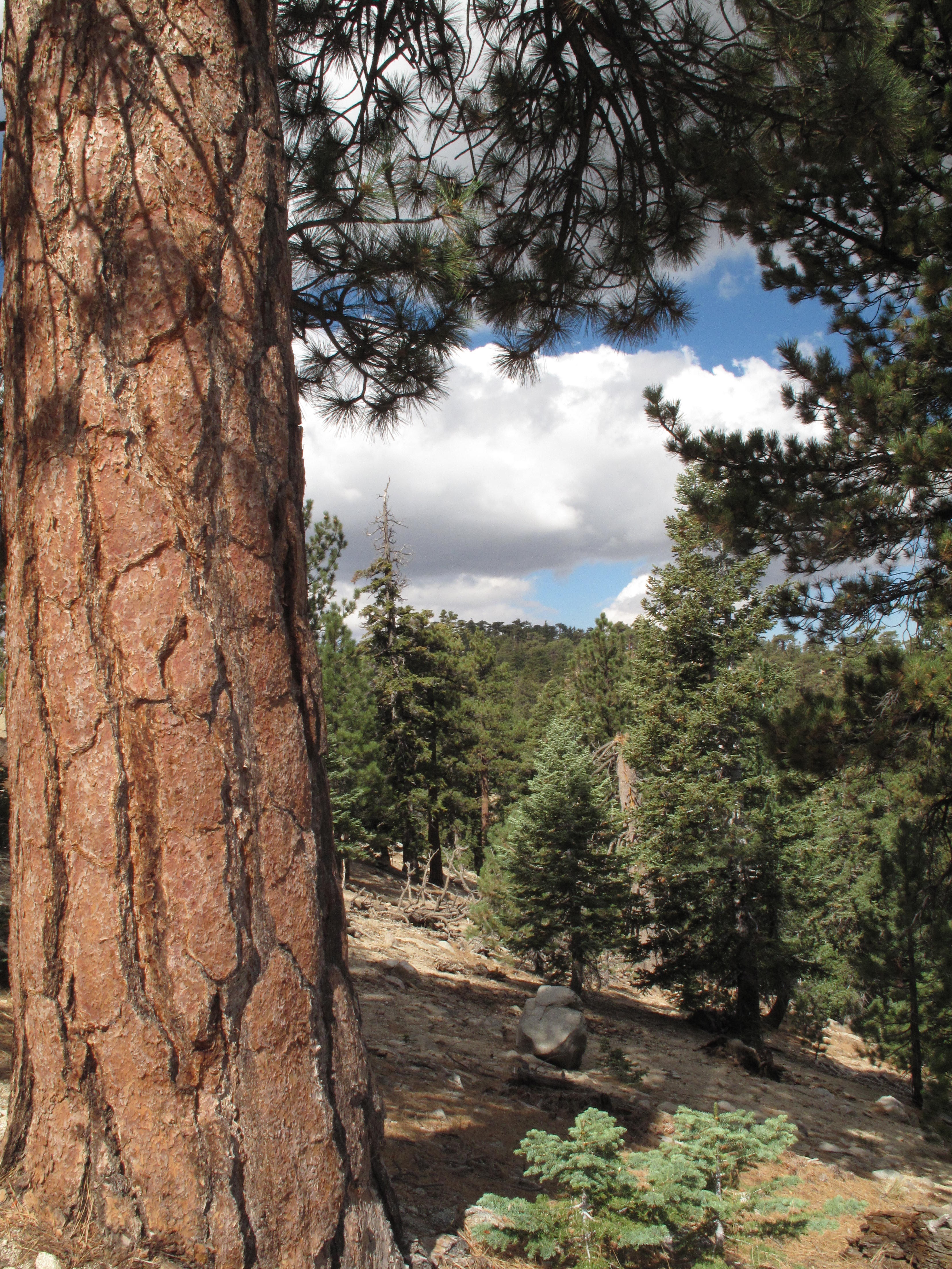 One of the nicest hikes in the San Gabriel Mountains, Waterman Mountain is certainly worthy of repeat SOTA Activations, and this was our third time in about 2 years.  Being graced with a very reasonable access, well graded trail and magnificent specimens of Incense Cedar (see: https://en.wikipedia.org/wiki/Calocedrus  ) and Ponderosa Pine (see:  https://en.wikipedia.org/wiki/Pinus_ponderosa  ) it’s a wonderful and popular SOTA objective.  The trail is 6 + miles RT, with 1,200 feet elevation gain.  The summit area is lightly treed, but still has views if you search them out.