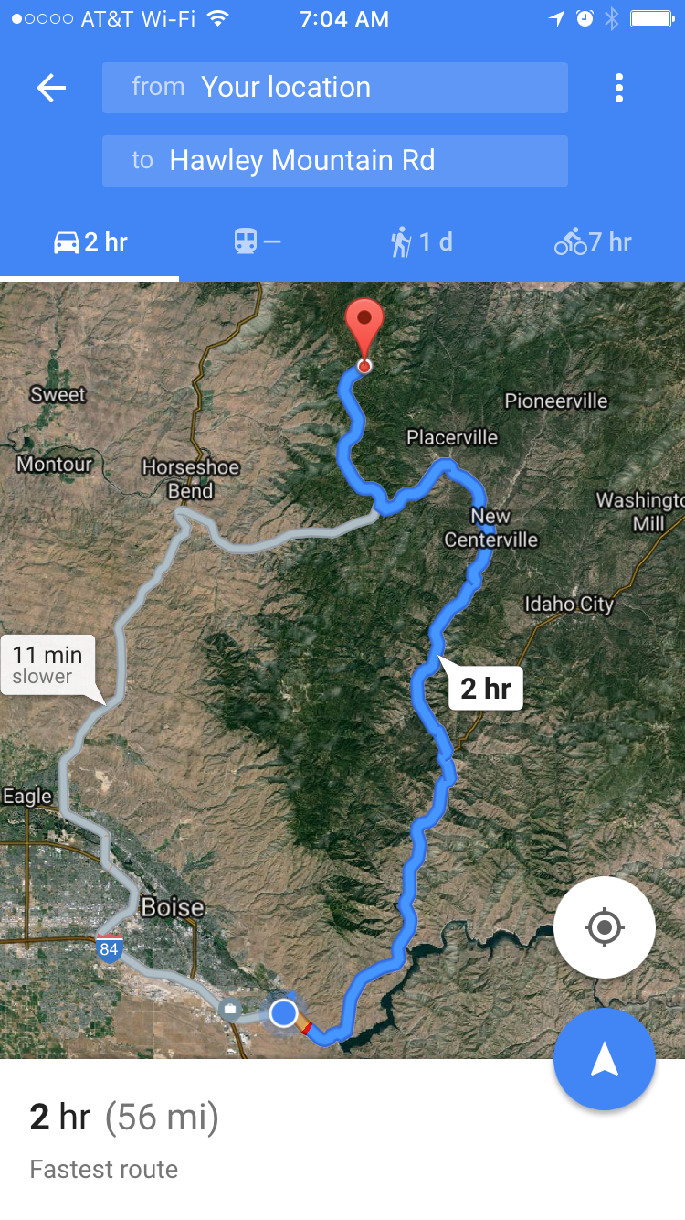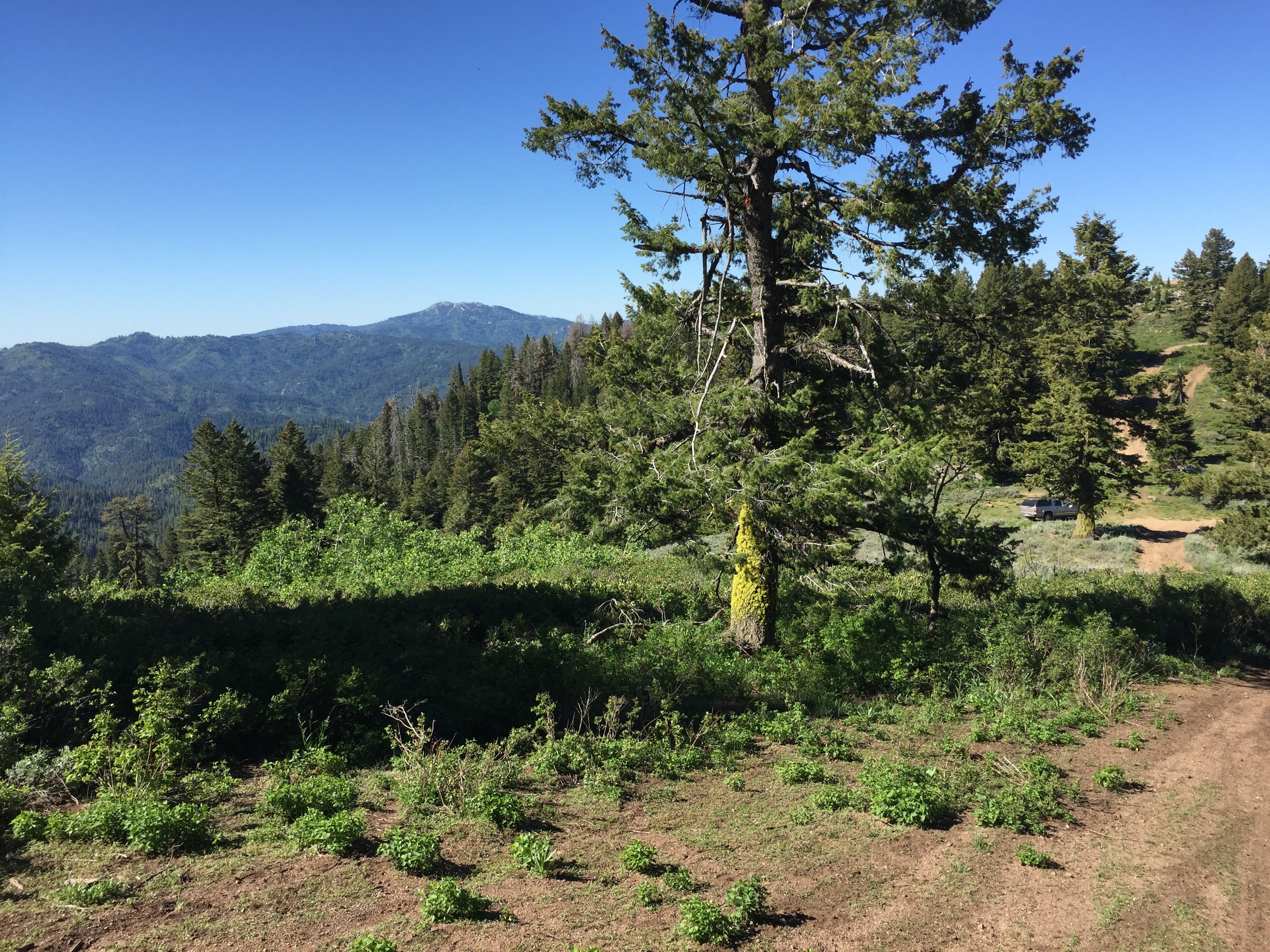 Peak 7057 is the first peak along the FS374 ridgeline north of the Harris Creek Summit.  The second peak is Hawley Mountain (W7I/BC-069). Harris Creek Summit (saddle) can be reached from Harris Creek Rd. which connects Horseshoe Bend and Placerville, Idaho.  It is a dirt road in good condition.  From Harris Creek summit, FS374 is a resonably good single track road.  SUV or other high clearance vehicle recommmended, but I did see a sedan parked at the base of Peak 7057!  Minor rocks and ruts along the road so should be passable by most cars/trucks depending on your level of scraping desired.