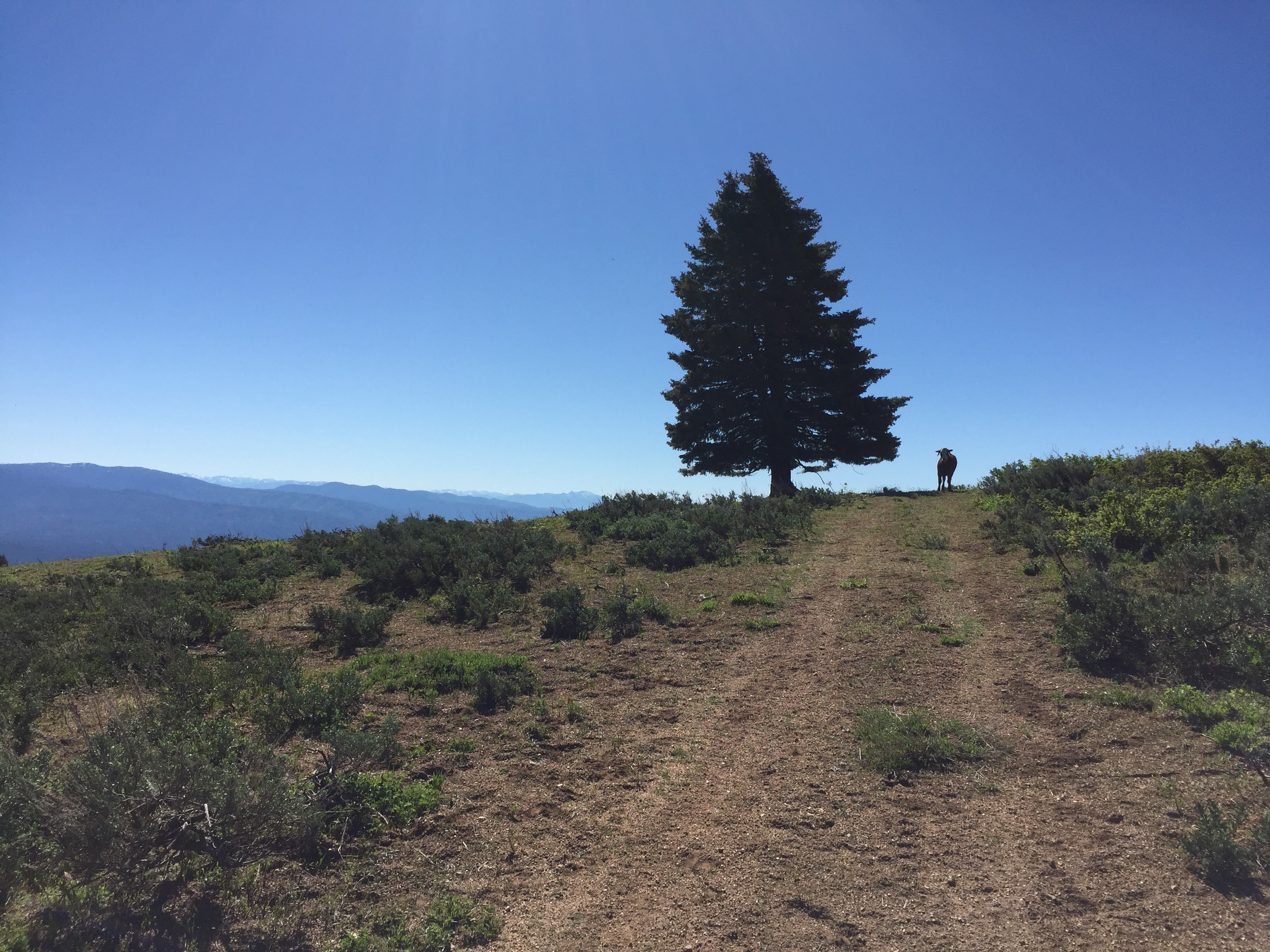 I was greeted by a lone cow about half way up to the summit.  She occompanied me up the road to the summit, but wasn't quite sure if she wanted to get on the radio or not.  I guess just looking for companionship as it appeared she was quite lonely seperated from the heard.  The summit itself is rounded with plenty of options to setup a station.  A few large trees are available, but I ended up trapping my sotapole to a shorter scrub tree near the SW side of the peak.  Quite a bit of short scrub brush/weeds on the summit so I found a flat dirt spot to setup my gear.   No shortage of biting ants though.