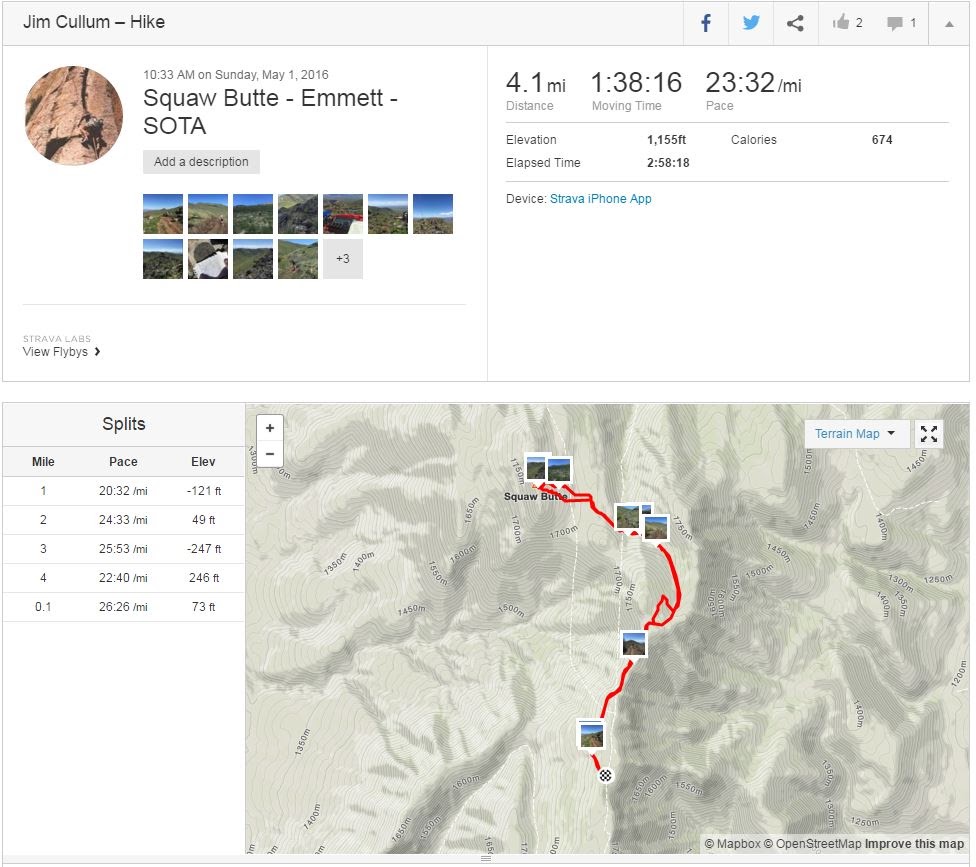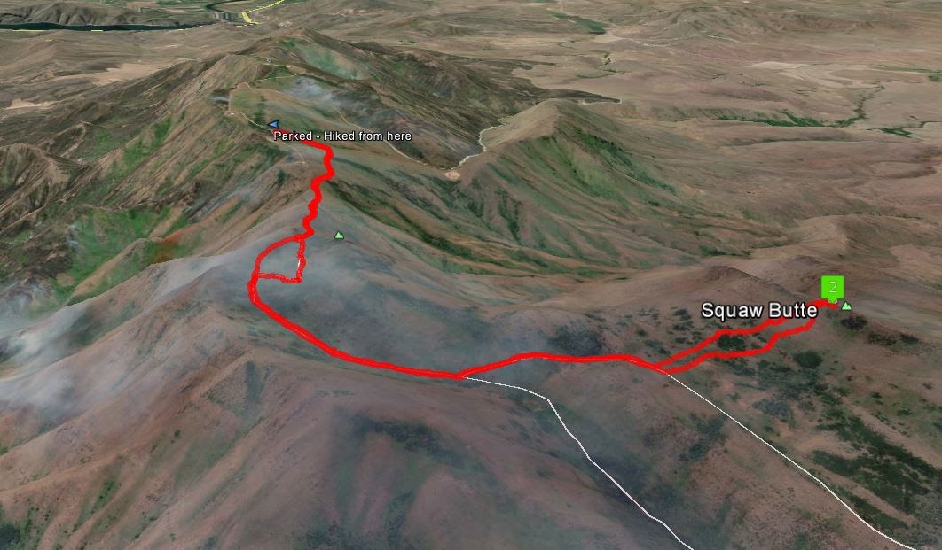One of a couple Squaw Butte's in Idaho, this one near Emmett Idaho was activated on a pleasant Spring day. Heading North out of Emmett Idaho, you can connect to a dirt road that leads you to the top of "Squaw Butte". However, the highpoint is about a 2 mile hike from where most passenger cars will need to park.
