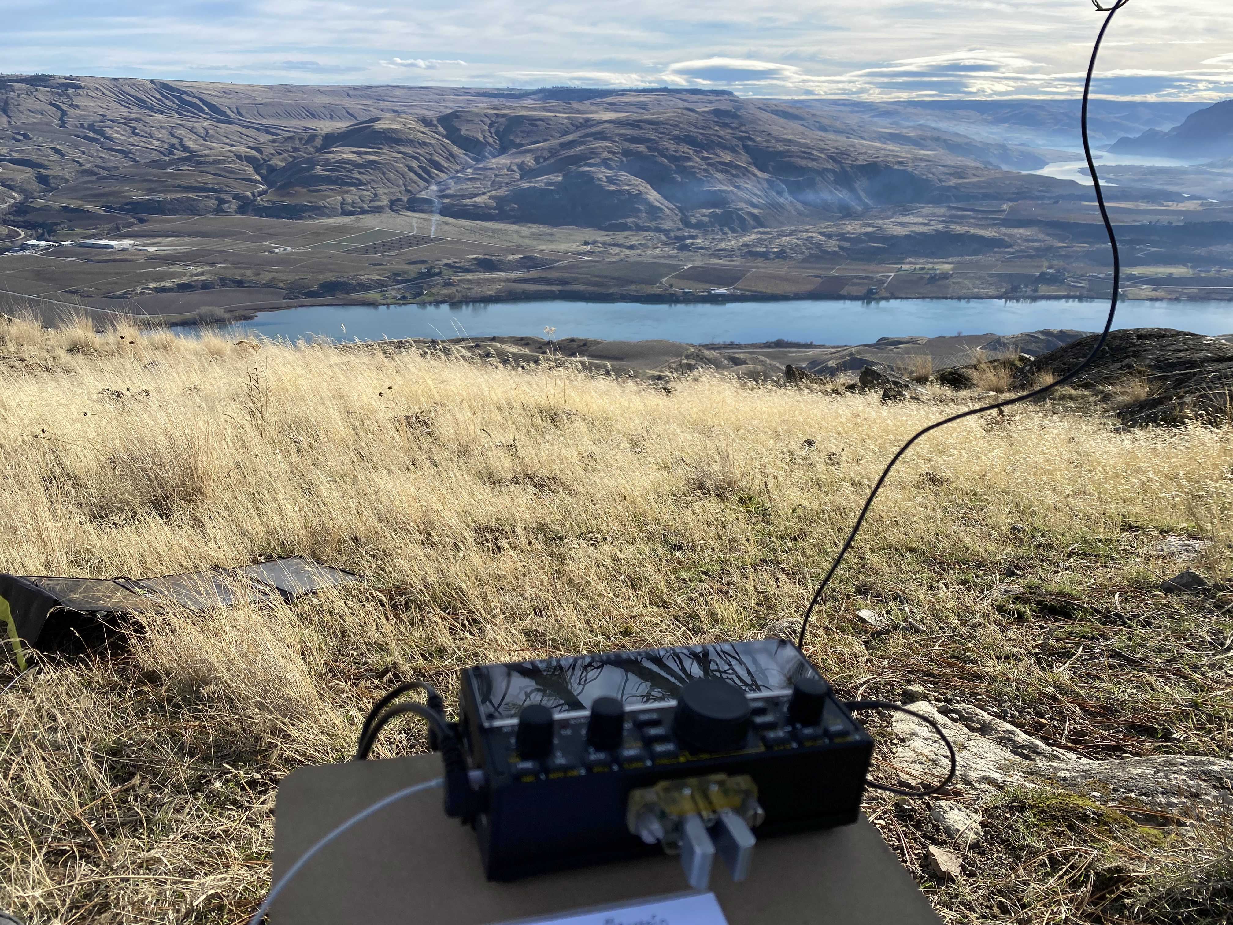 I completed the first activation of Tenas Mountain today. The hike I took and the peak itself are both located within Indian Dan State Wildlife Recreation Area. My route is about a 4 mile round trip with 1000 feet of elevation gain. I parked at the parking area at (48.11129,-119.86790). A Discover Pass is required. The last two miles of the drive was on a dirt road, but it was in excellent condition. From the parking area, I hiked along an old double track road towards the summit. It's easily visible from aerial imagery. Once I was at the base of the mountain, I left the road and ascended the northern slope of the mountain. There is no established trail but choosing a route is easy. It's fairly steep, but not extreme. Stay to the right of the false summit or you'll end up having to descend again slightly before reaching the true summit. At the end there is a very short and easy scramble.