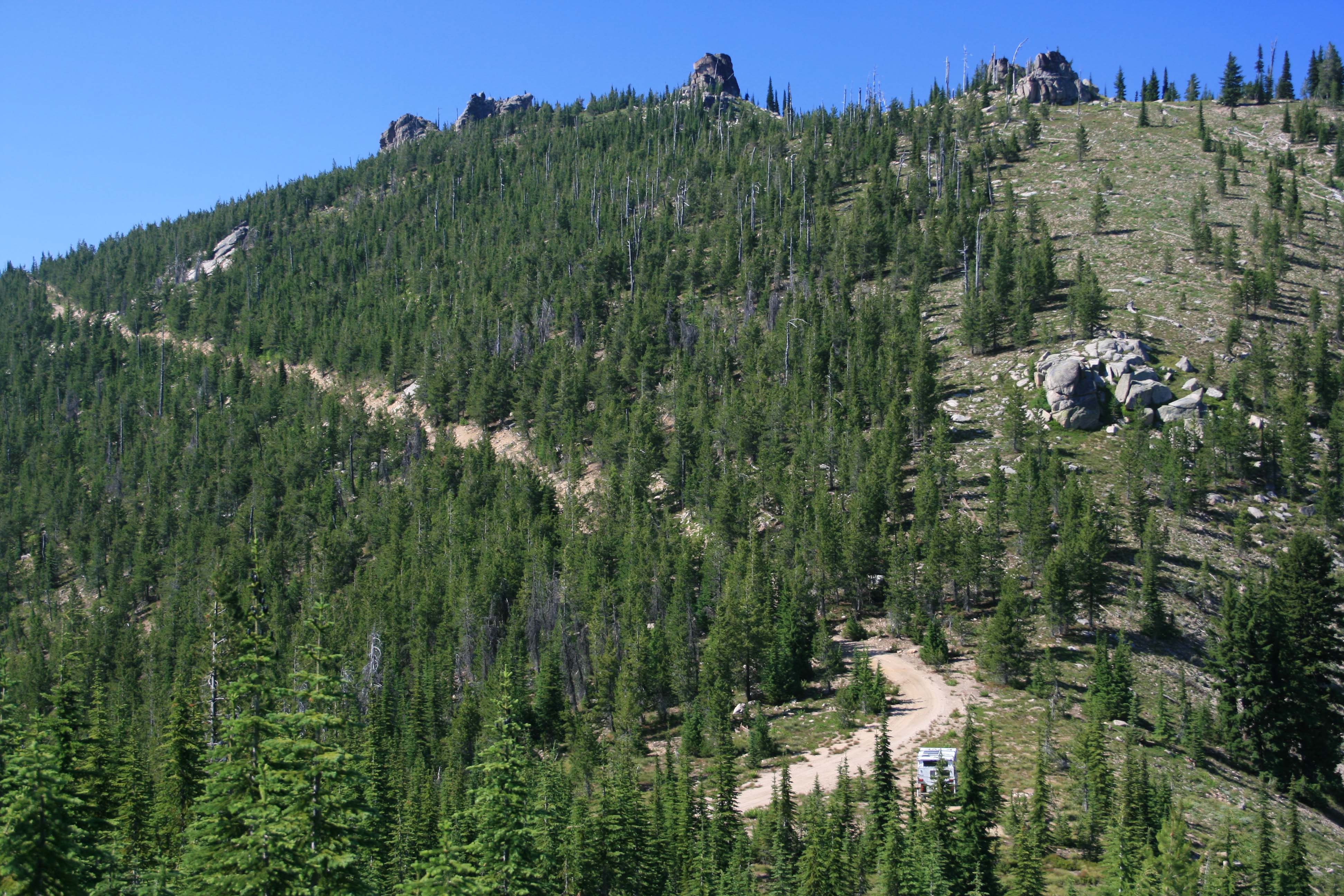 Directions: From Highway #12 approximately 27 miles west of Powell Ranger Station turn north onto Saddle Camp road, USFS #107. Follow #107 for approximately 8.75 miles to Saddle Camp junction with FS#500. Turn east onto FS #500. Continue up this road approximately 3.5 miles to the junction of #588 at Howard Camp. Travel north up #588 approximately 4 miles to the summit.