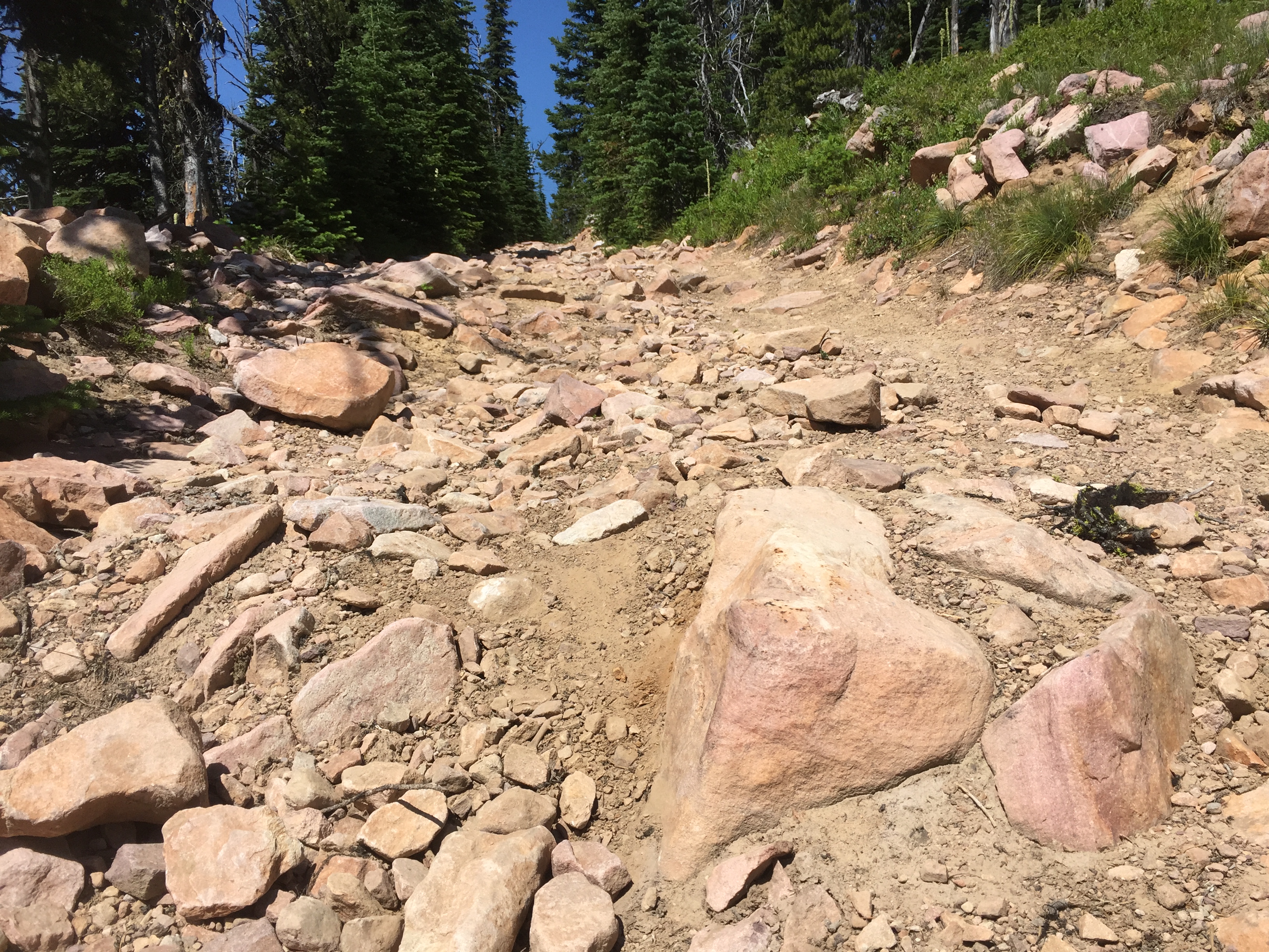 The summit has scattered trees and much open area with lots of large loose rock.  Within the activation zone are scattered alpine larch that grow only at this elevation and higher in this area.  Subalpine fir and some scattered Douglas-fir, whitebark and lodgepole pine, and spruce make up the remaining trees.  Pica, chipmunk and golden mantle ground squirrels scurry about during the summer.  A dusky grouse strutted near my operating position appearing to question why I was there.