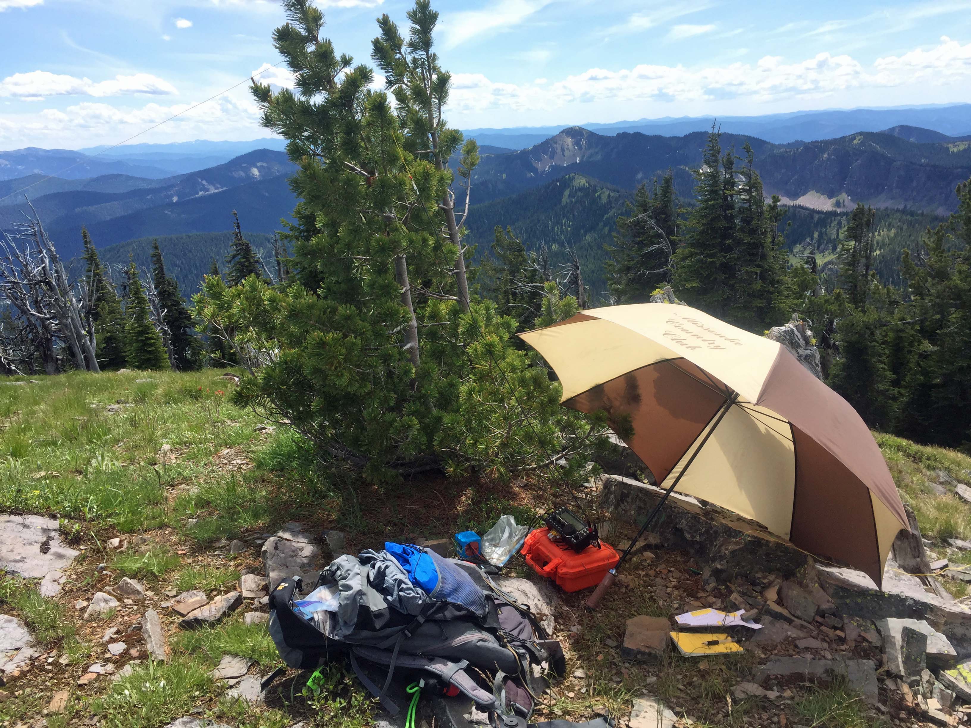 Mount Headley is easily accessed via a moderately climbing trail in the southern Cabinet Mountains. It also makes an easy SOTA double when teamed up with Vermilion Peak, W7M/LO-056. The summit is the tallest in the area and has fine views of nearby summits, lakes and distant peaks. Be sure to stop and view Graves Creek Falls while traveling the Graves Creek Road to the summit. A large pullout on the Northside of the road is at about mile 3.0. It is not signed.