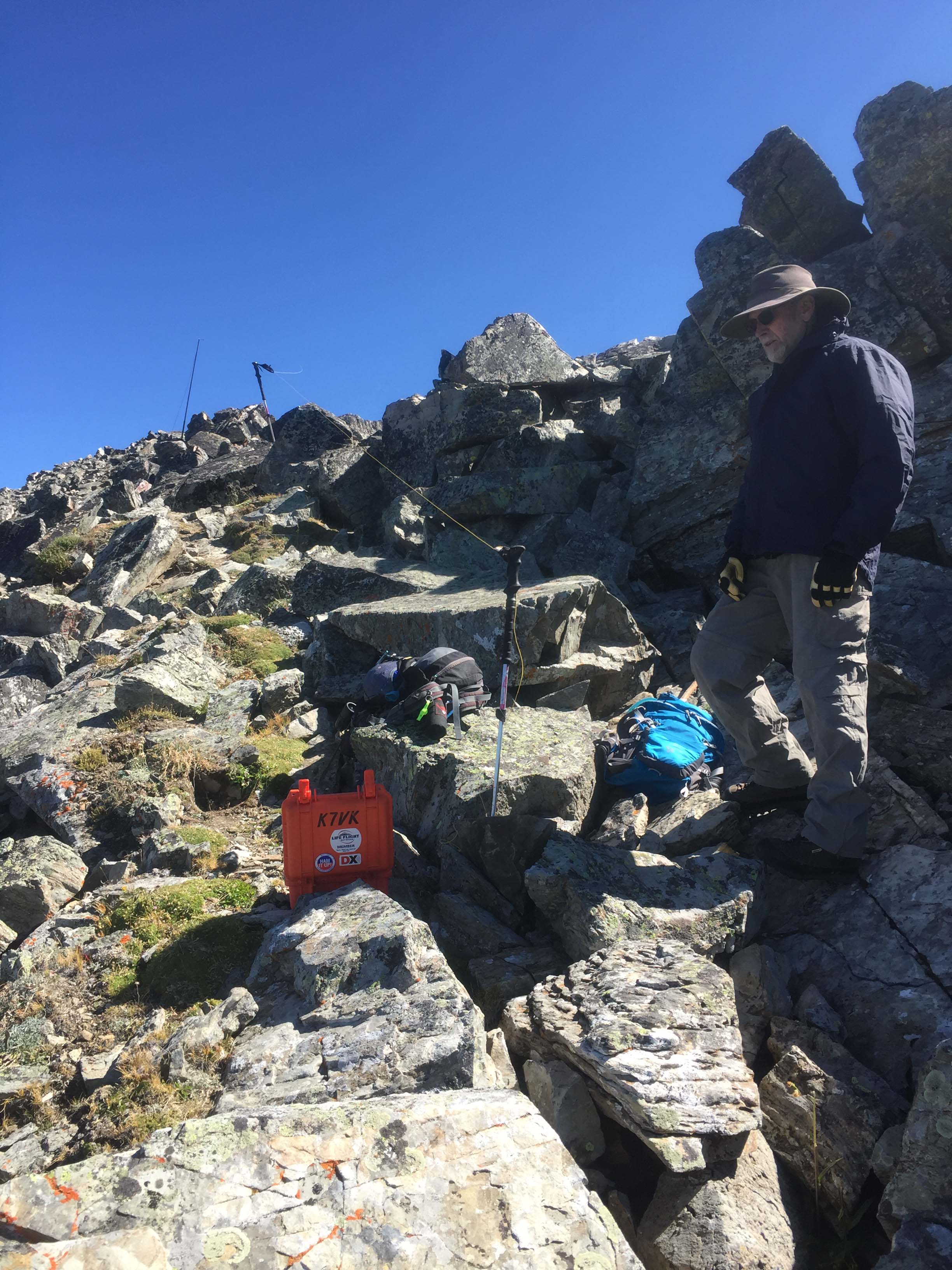 The summit provides excellent views of high mountain lakes and open alpine SOTA peaks. A glass jar register filled with paper is tucked into the summit rocks.