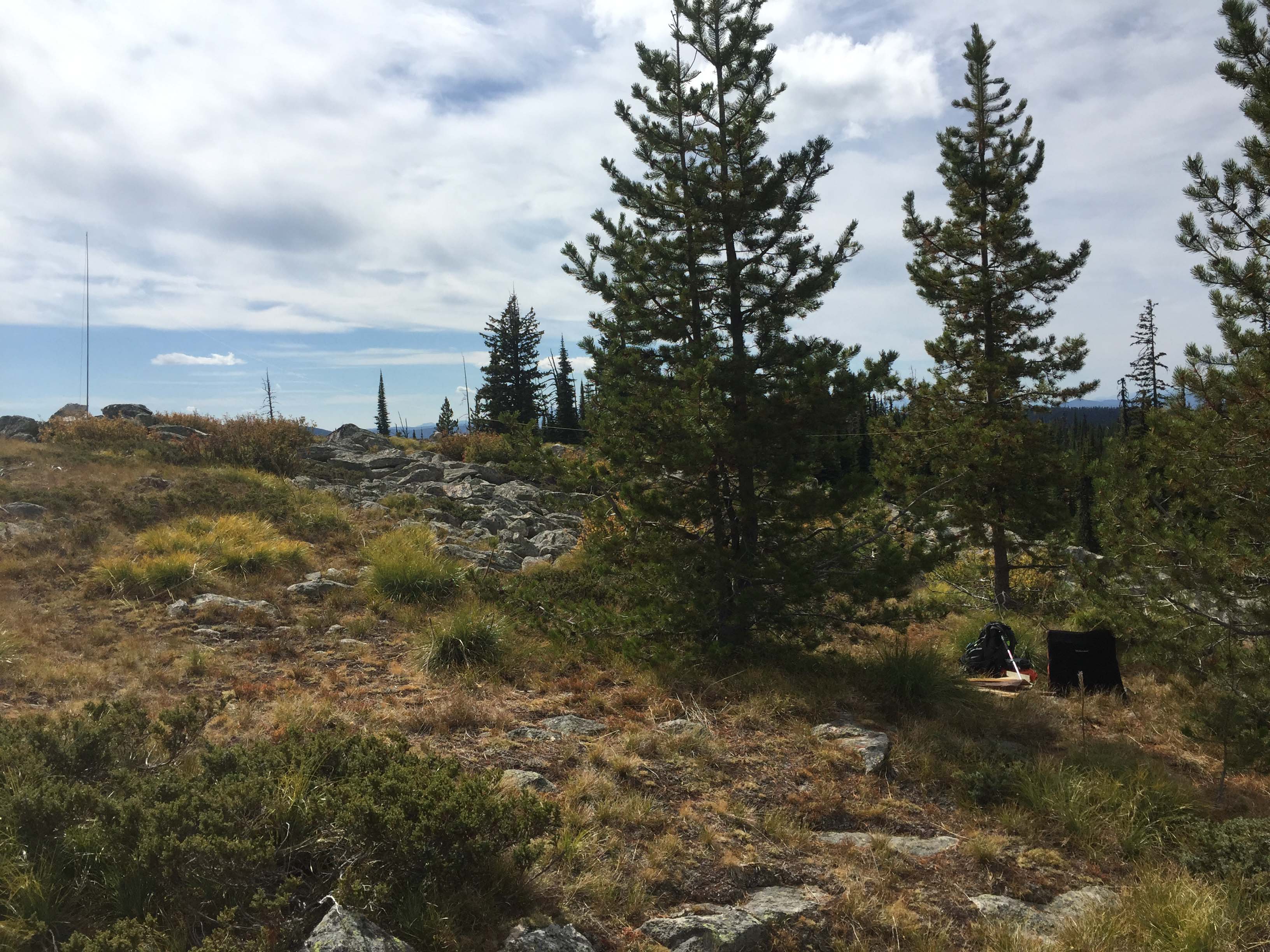There are scattered trees on the summit for hanging wire antennas and rocky ground area for securing antenna poles.