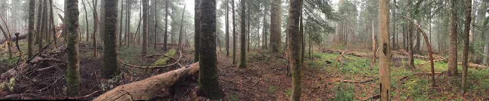 The summit itself is densely forested and probably without views but it was hard to tell because I was sitting in a cloud the whole time I was up there. Here's what it looked like from my operating position: