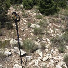 There are no trails up to the summit. So, you just need to park and head off. You definitely want to come in from the south side as it is a much more do-able hike. I am not sure I would say easy -- it is around 700' in about a half mile. The junipers are not so thick that you lose sight of the summit for long on the way up. You do not want to get any further west than my tracks as shown below as the hillside gets even rockier than it already is. (Another route would be to park at the cemetery on the southeast side and come up that way. There is a bit more elevation gain that way and the junipers seem to be a bit thicker.)