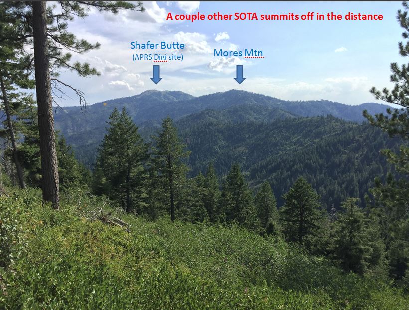 As expected we had no cell phone service at the summit so we used APRS to spot ourselves. The nearest digipeater site was visible by line of sight 4 miles away on Shafer Butte so we had no trouble. A APRS2SOTA spot went out and we called CQ on 20M for what seemed like forever until finally N4EX showed up and K7ZO worked him. Our plan was for both of us to work all callers but he disappeared before I could hand the mic to K7MK. We did each manage to work the next 5 to make it a valid activation for both of us. But, a good lesson learned was "Don't start activations too late on weekday nights". We missed many of the regulars including Gary and Martha.