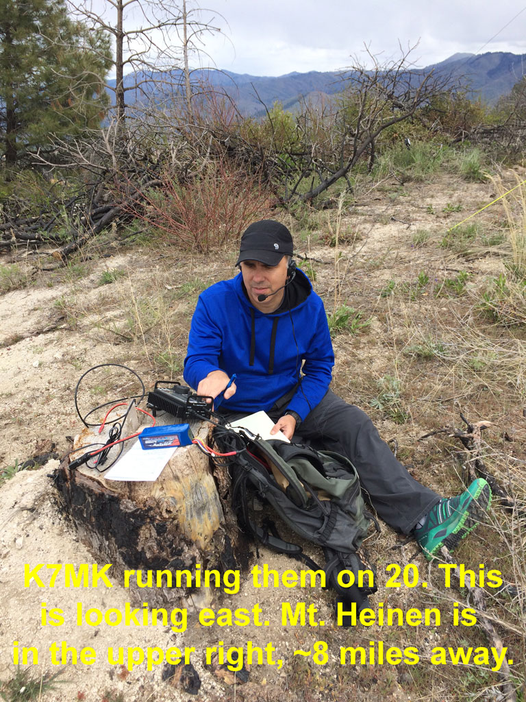 Actually getting on the air is always the fun part. K7MK started out and worked down the pileup on 20 meters making 20 some QSOs. When that was over K7ZO took over and started on 40 meters. We knew NS7P was waiting for us there via a heads up from W7RV. Scott worked him right away then a couple of more. That left him with three QSOs. One more for an official activation. So, up to 15 meters. Loud and clear VE2JCW called in to make it an official activation. There was another US, then a KH6, and after many more CQ's, just as I was about to go QRT EA2LU rose up out of the noise with a very nice S4 signal. I got my signal report right away but it took us another 5 minutes for him to get his signal report and confirmation. The QSB was crazy -- he as S4 on peaks and on dips was below the noise level, and we were in a pretty quiet location. But, we eventually made it a good two way QSO. I was pretty impressed. It was midnight local his time in Spain working me on 15 meters on the US West Coast and I was using 10 watts into an end fed antenna. That's a good QSO. The four QSOs on 15 meters were from four different DXCC countries. That was a treat as well.