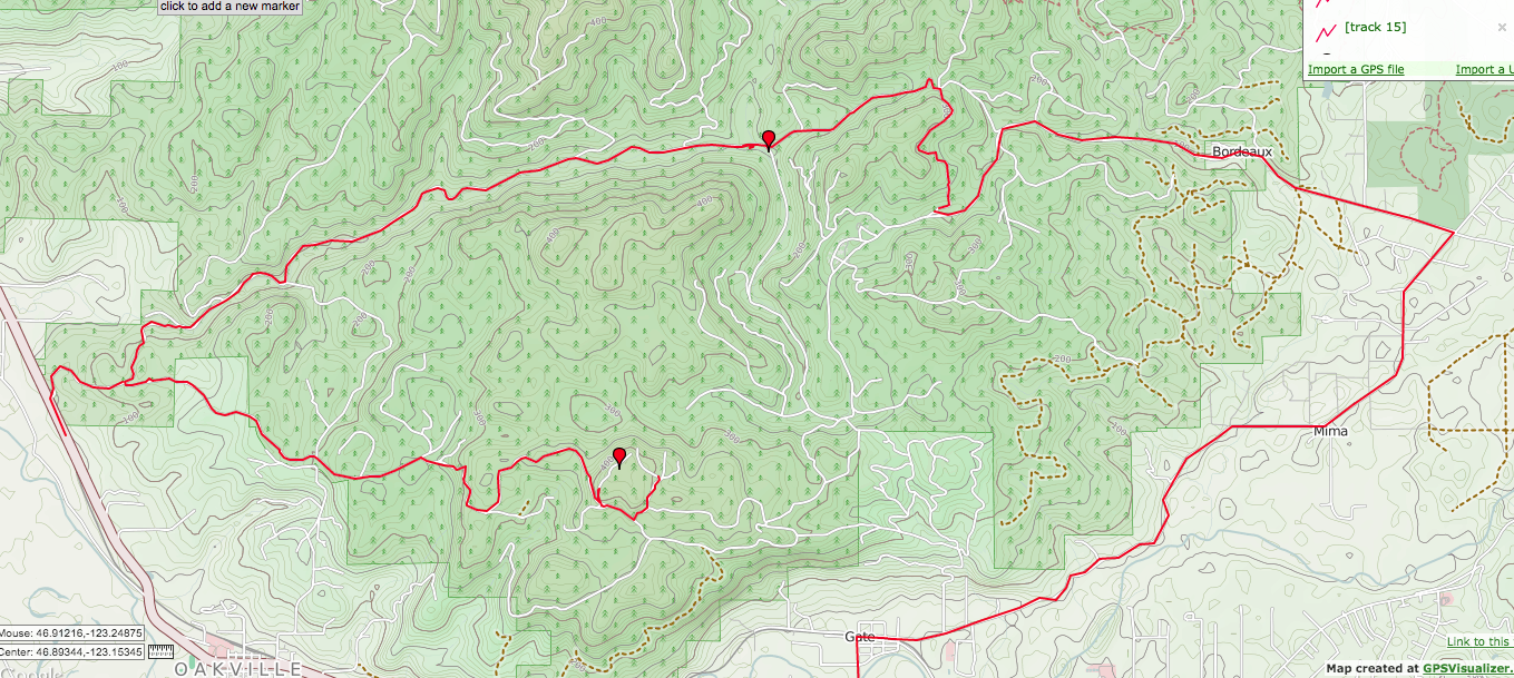 I was off work today and all the kids were at school. I had a doctor's appointment at 0915 and did not have anything else planned for the remainder of the day. I decided that I would head down and recon this unnamed summit in the South side of Capital Forest. Capital Forest has a handful of one and two pointers and this is the last one that I had not activated. Capital Forest is a State Forest that has opportunities for everyone; horseback riders, off road ATVers, hikers, bikers etc. I approached this summit from the East side but quickly found that there is a Correctional Facility that blocks the access road that I was on, so I backtracked and went around to the North and then came in from the West with no Problem (PIC of track attached). There was some logging in the area but my route did not take me through any of that. Without a high clearance vehicle you may have to stop a little farther down then I did. Prepare to do a little bushwacking. I came at the summit from the East but I would recommend parking at the gravel pit (easy to see on the map) and walk around the outside to the summit...save yourself some bushwacking! No views up here but if you must do an easy one point summit on the south side of Capital forest this is the one. All the rest are up on the North Side. I had 3 S2S with KT0A in SD, K6EL in CA, and NS7P in OR. 15 total contacts. 20m seemed to be doing well today. I will continue to hit the small 1-2 pointers in the Olympic National Forest over the Winter months. Keeps me doing SOTA.