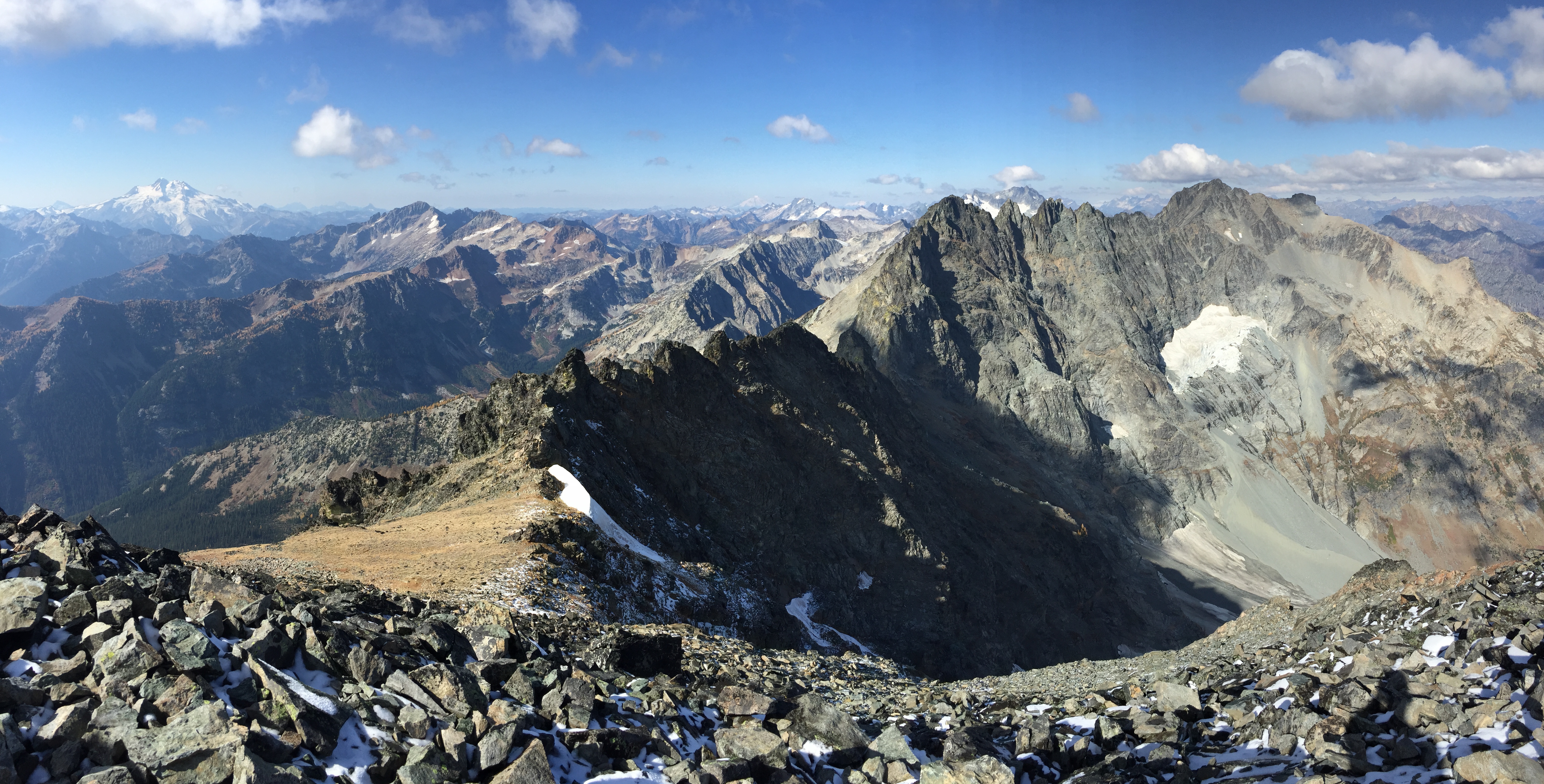 As most of you probably know, it is larch season and the larches were going nuts up there. Carne Basin was a sea of yellow larches and the route to Mt Maude was either dotted or swathed in larch yellow or blueberry red.