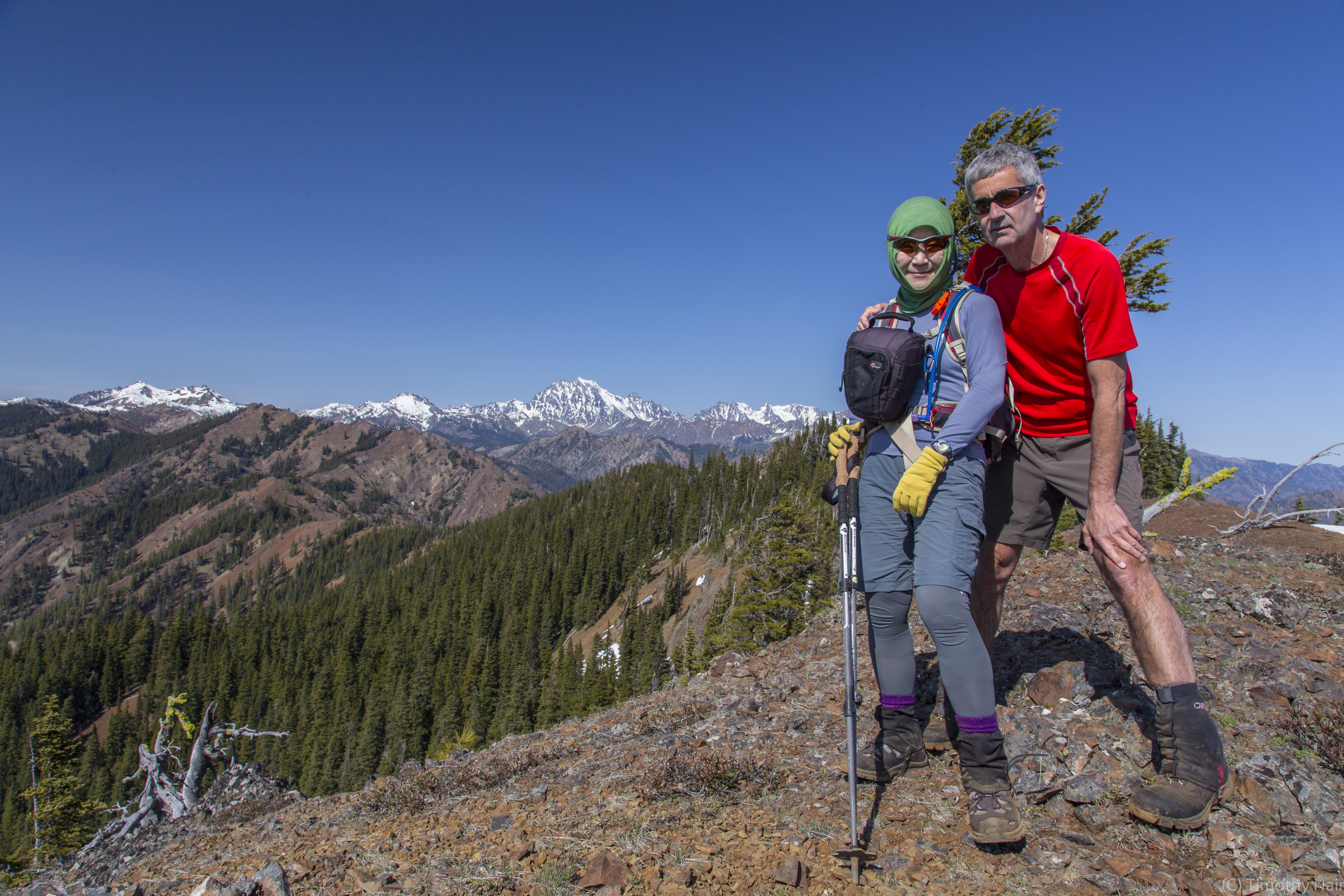 This was our third hike to Elbow Peak; this time it was sunny! Wow! Incredible views of the east side of all the Snoqualmie Pass peaks, and the mighty Stuart Range. We only saw 2 other couples the entire day, so a very peaceful and beautiful hike in the Teanaway region. Only a few minor patches of snow at the 5000 foot level, and these were in the shady areas. No trouble passes them with only hiking poles.