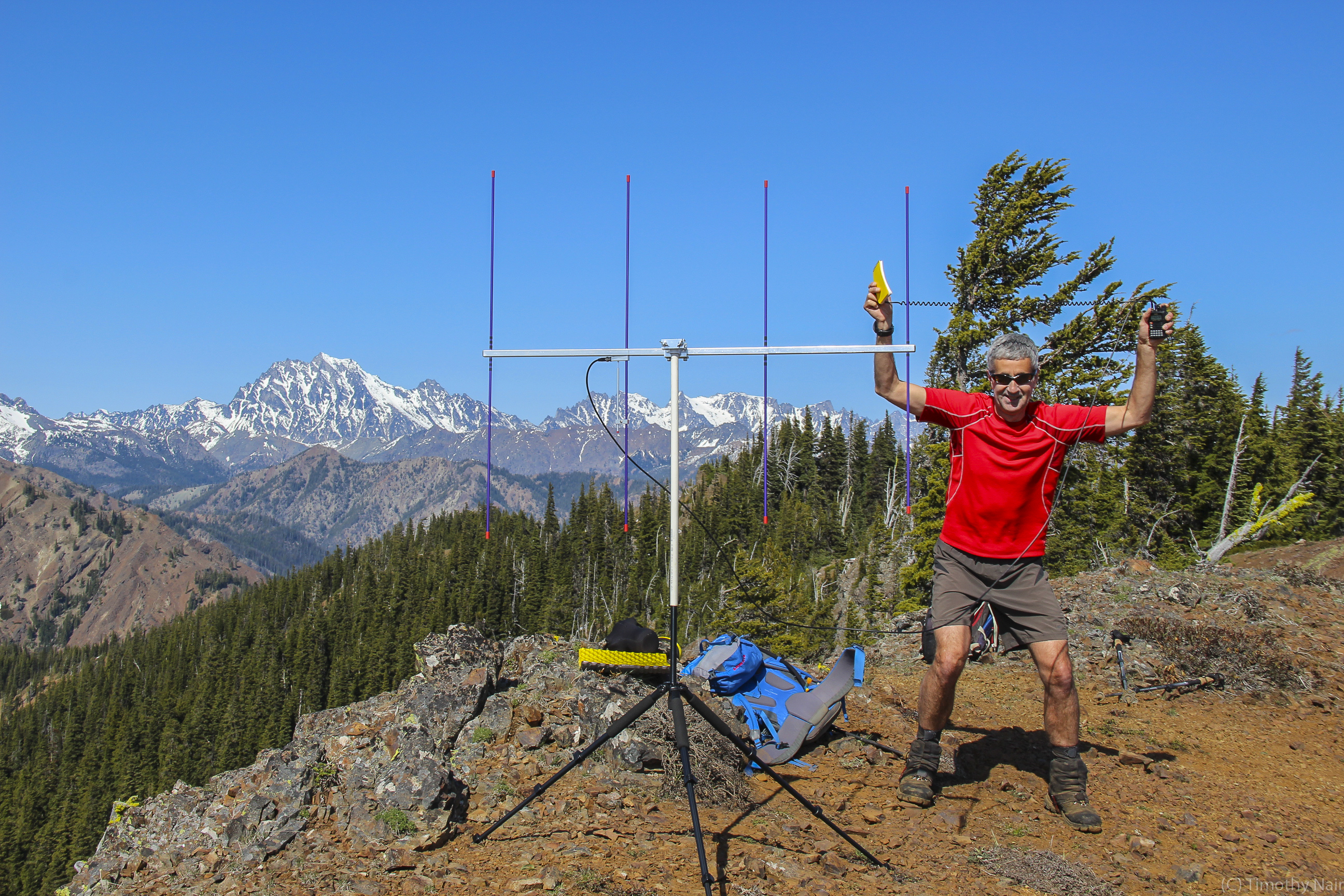 I used my Yaesu VX-6R on 2m, 145.52. It took about 45 minutes to make the minimum required 4 contacts. The summit is approximately 35 miles from Ellensburg, the town most of my contacts were located; with 1 exception - I talked to a hiker who was on Whiskey Dick Mountain on his HT - so we had a "summit to summit" I don't beleive Whiskey Dick Mountain is a SOTA summit, so no points for communicating wit him.