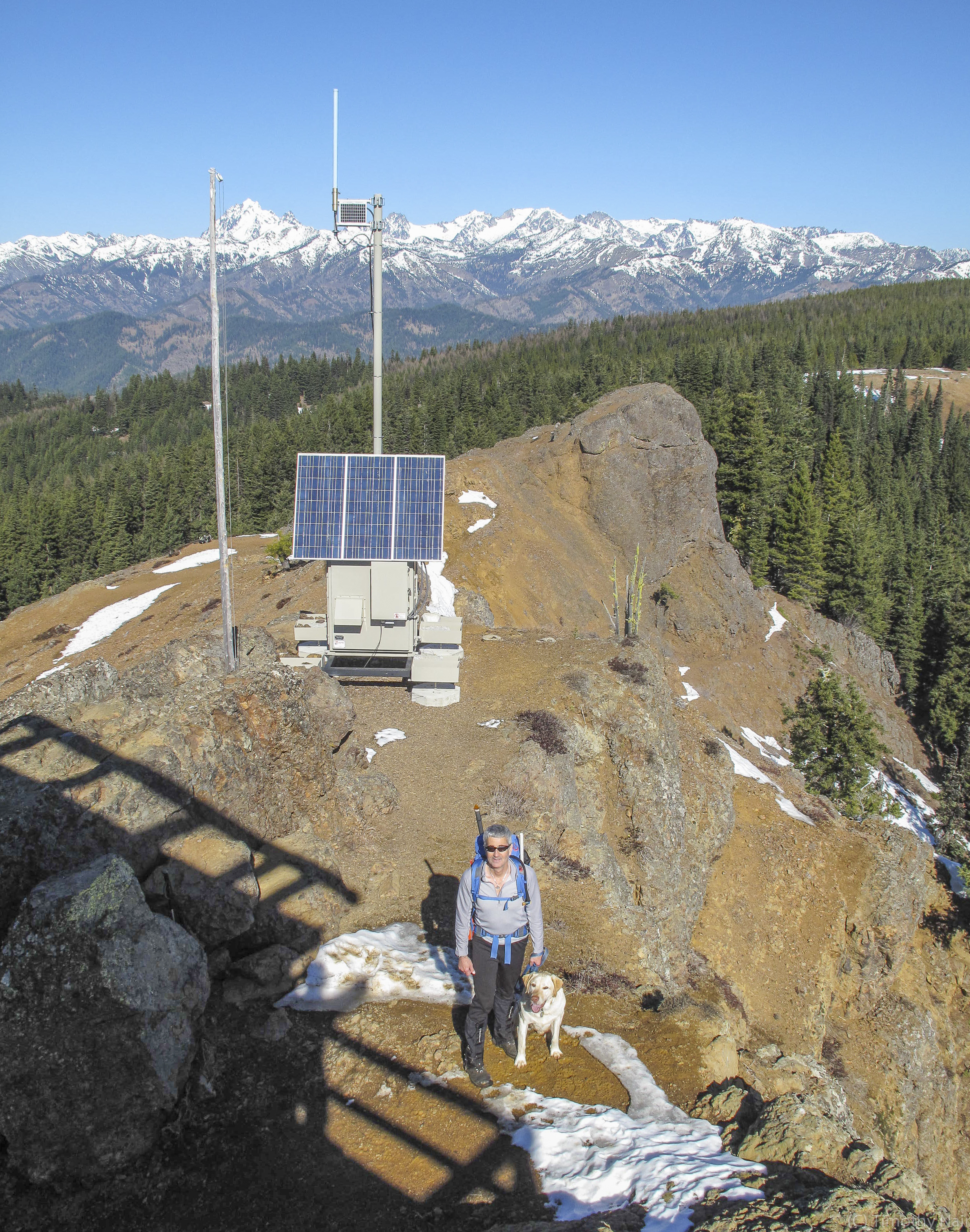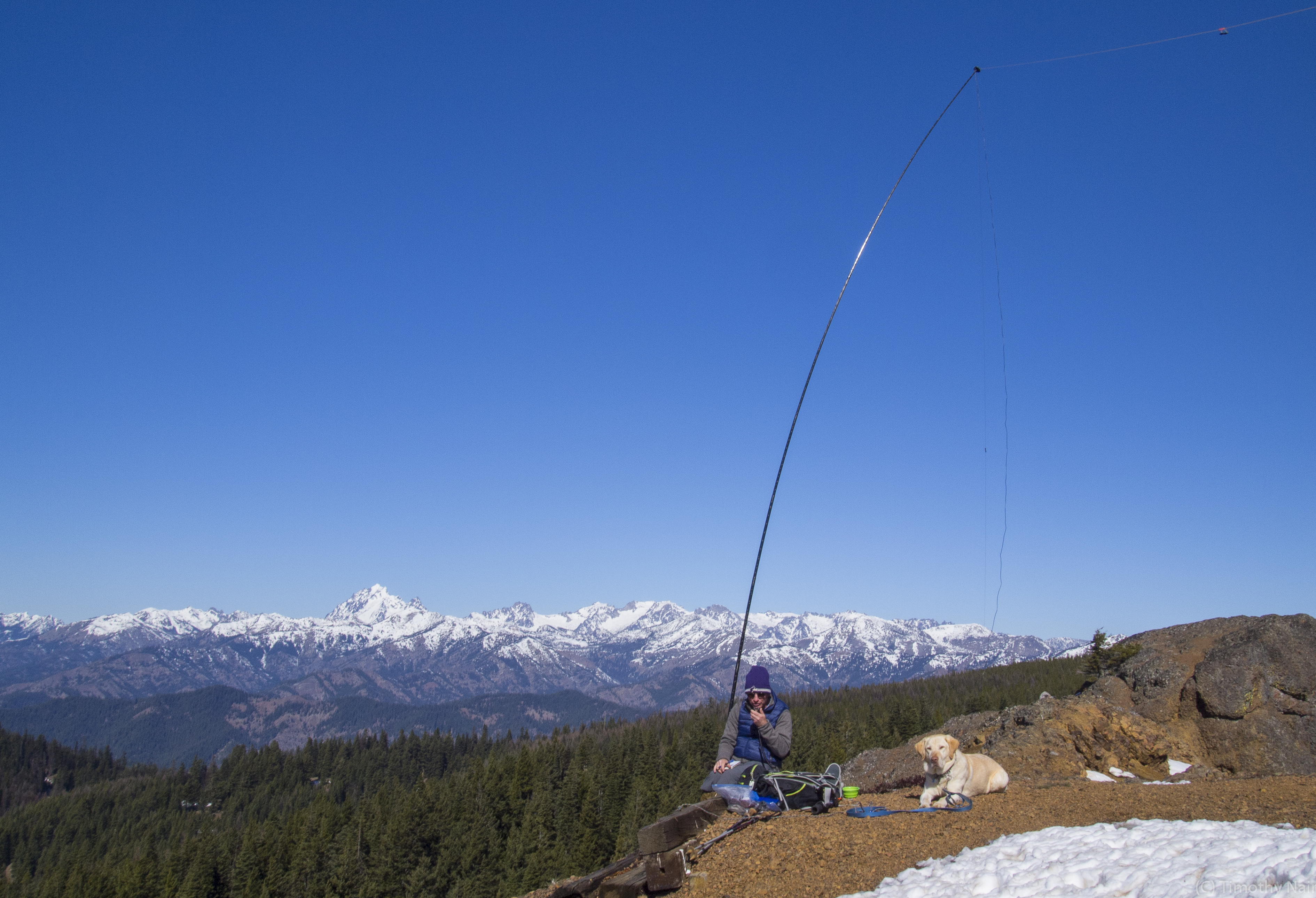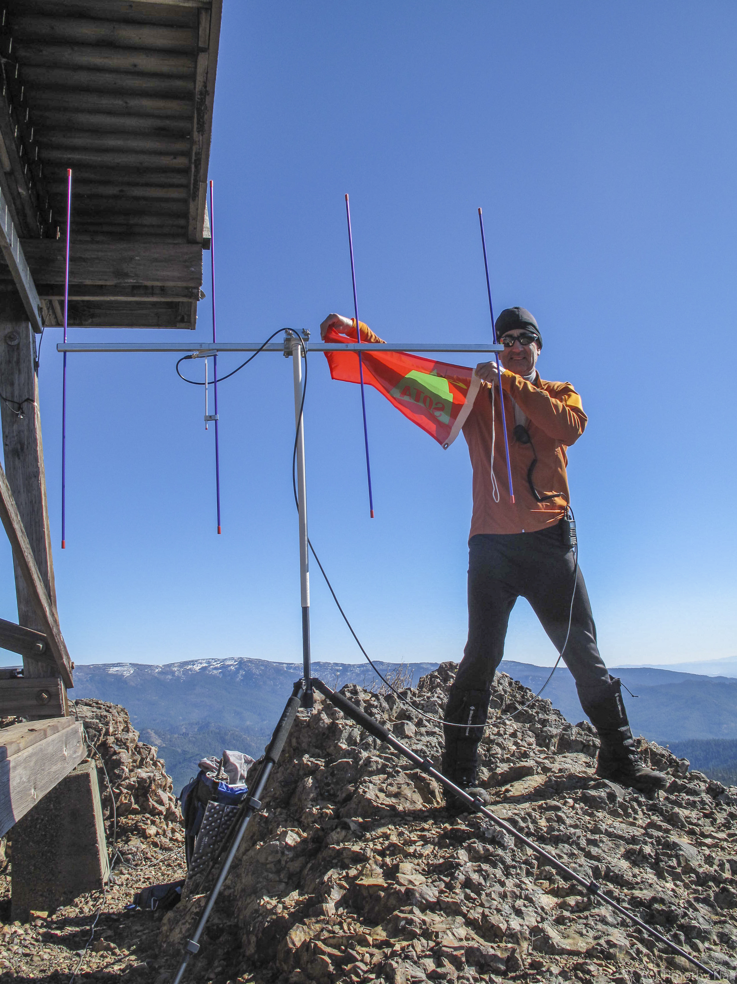 A very enjoyable day out in the mountains with great company and SOTA success! This was my first time on Red Top Mountain, although I have summitted many other peaks in the Teanaway region of the Central Cascades. This was our second joint Activation, with Mark Sandler, K7MAS. Mark is helping me understand the benefits of HF when on the more remote peaks of the Cascades. Once set-up, Mark succeeded in making contacts on HF immediately, while I patiently called "CQ", "CQ" and waited....and waited. After several minutes I made 1 contact on 146.52-FM. After half an hour or so of no response to my CQ calls, I relocated my 4-element Yagi-Uda Arrow Antenna to the other side (south) of the lookout tower, and began making contacts with hams in the Ellensburg area, eventually making 6 contacts!