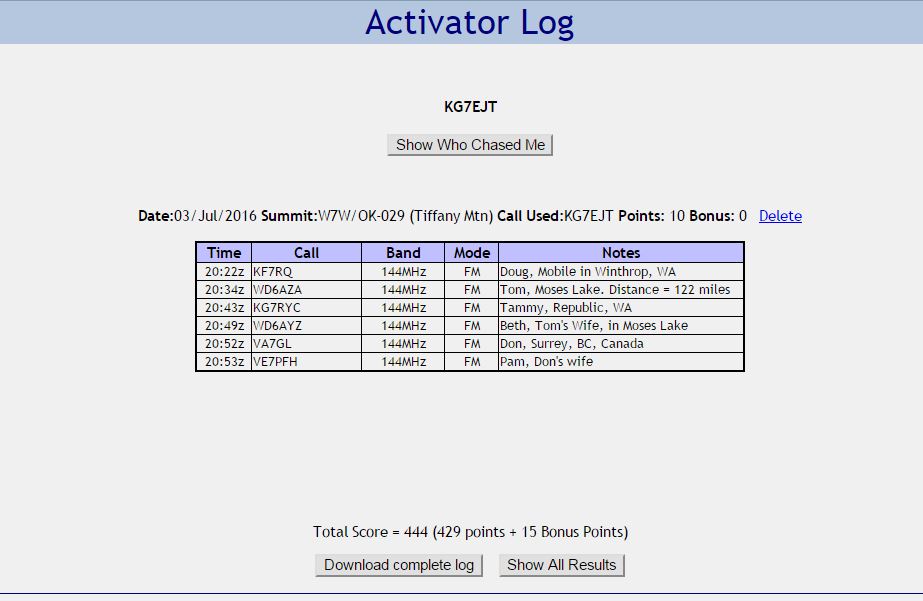 Successful 2m-FM Activation of Tiffany Mountain, Okanogan County, Washington July 3, 2016