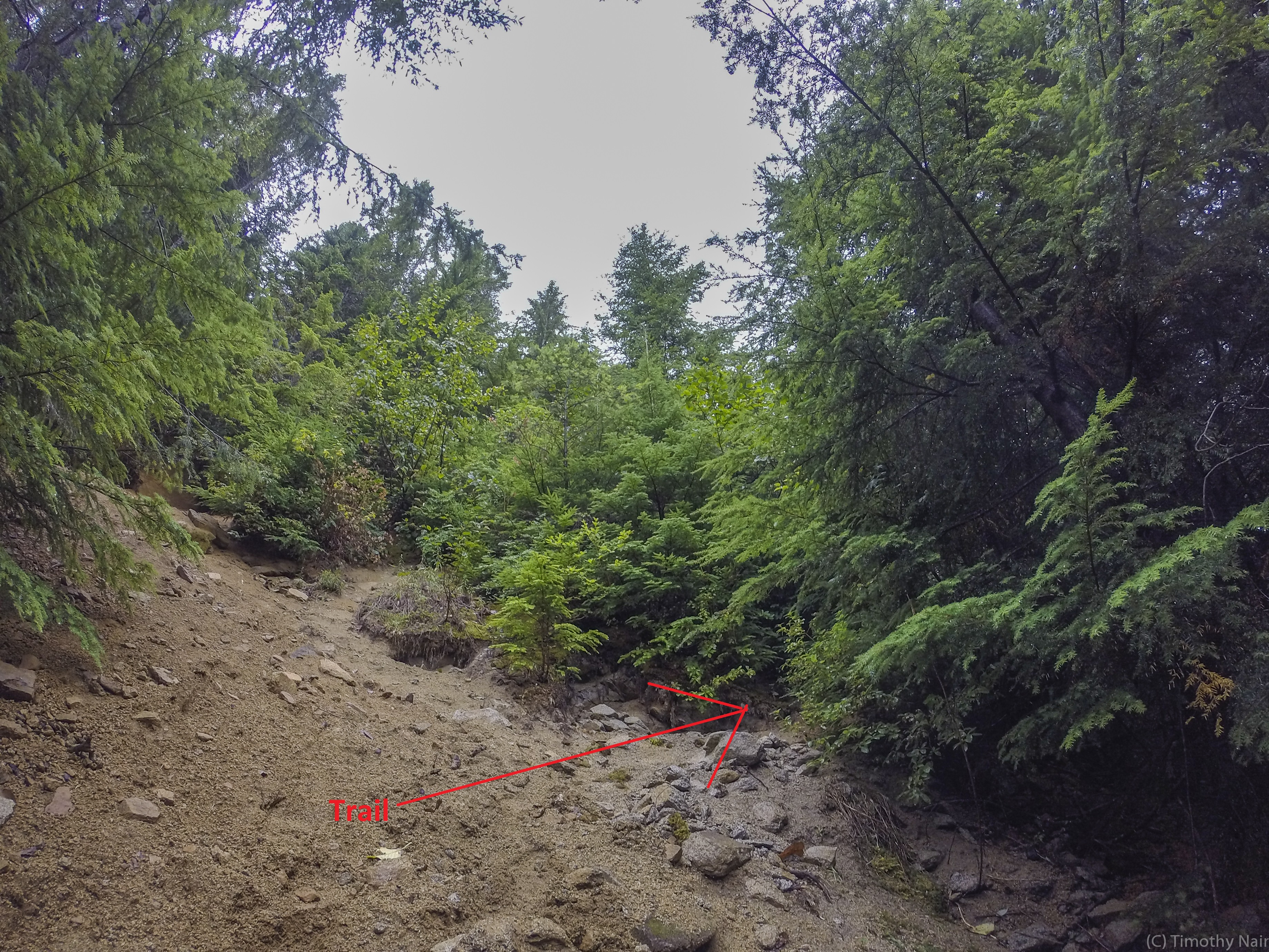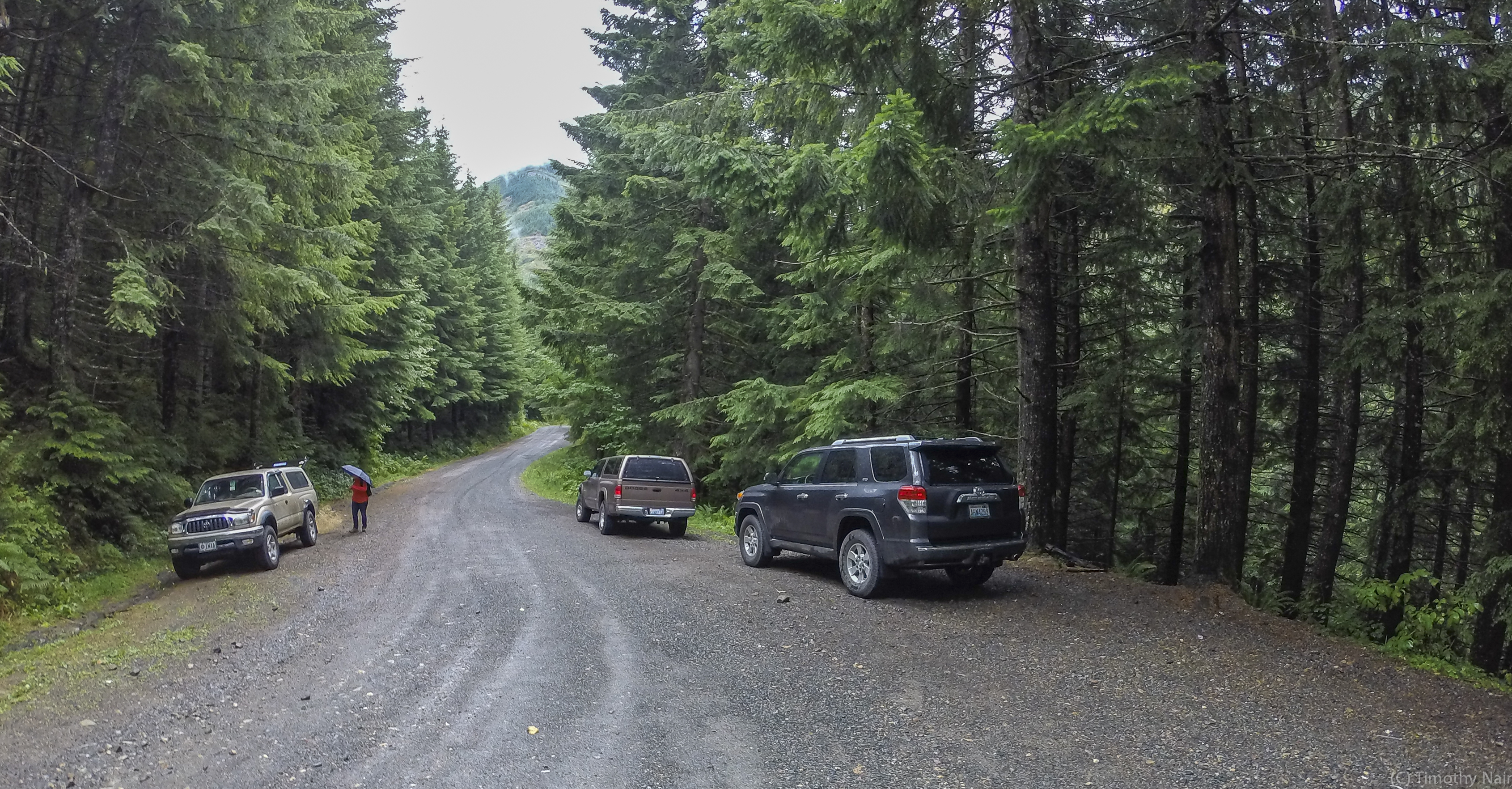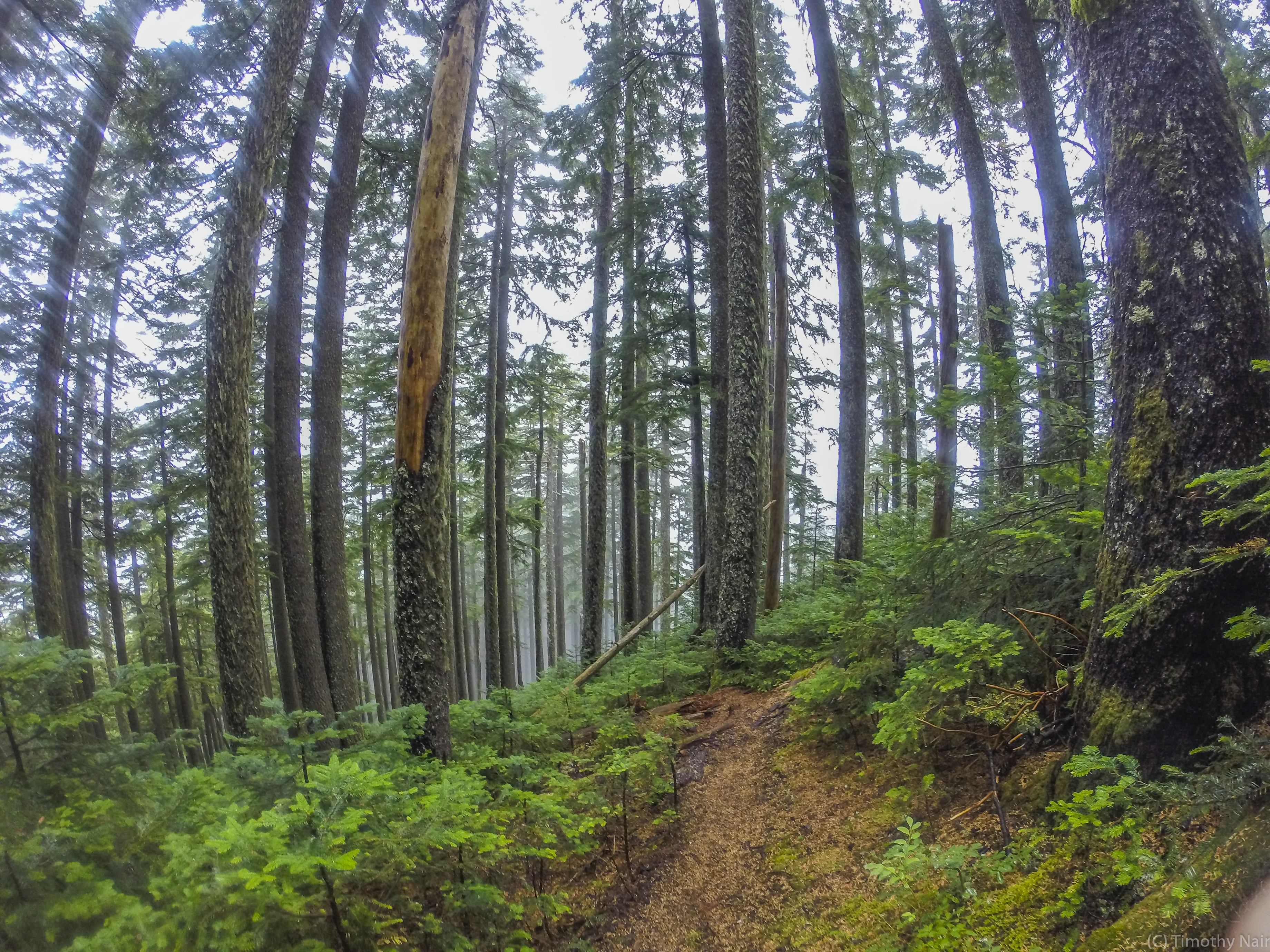 There were only a few cars parked in the parking area when I arrived at about 10:15AM. The first 0.7 miles follows an old logging / mining road, gaining a few hundred feet. At about 0.7 miles along the road, just past a sharp switchback, an obvious trail veers off to the southeast. I took a photo of the turn-off for the trail -it follows the ridge all the way to the summit. The trail is relatively steep, gaining about 2750 feet of elevation in about 1.8 miles. There are 2 places on the upper sections of the trail where it was difficult to "see" the trail as it crosses boulder fields. I ended-up do some unnecessary "bouldering" on the way up, but found the trail more easily on the descent and followed it all the way back down the ridge. It took me 1.5 hours to ascend, slowed by the 2 boulder fields...Descent took 45 minutes back to the trailhead. On the ascent, about several hundred feet below the summit, it started raining heavily and the wind picked-up. The summit was cold, wet and zero views. I've seen WTA trip reports from the summit taken on clear days, so I know the view could be spectacular!